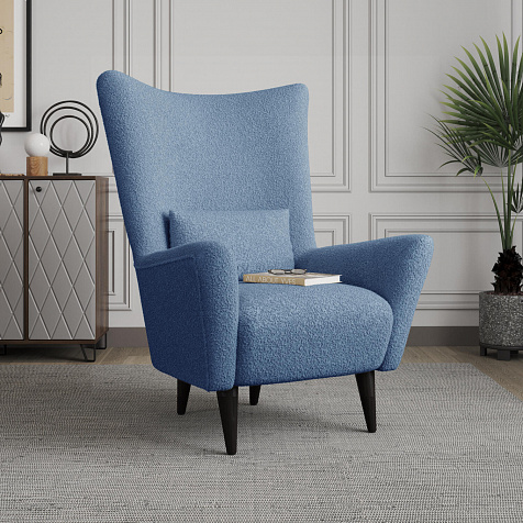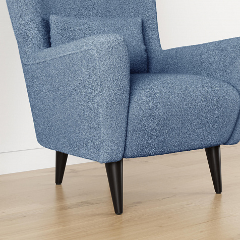 Обивка: букле Soul (100% полиэстер), плотность ткани — 570 г/м2, устойчивость к истиранию — 53 000 циклов по тесту Мартиндейла.
