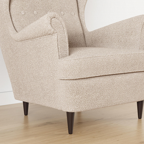 Обивка: букле Soul (100% полиэстер), плотность ткани — 570 г/м2, устойчивость к истиранию — 53 000 циклов по тесту Мартиндейла.