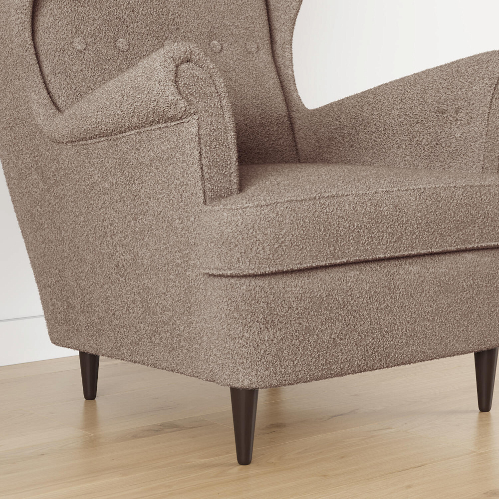 Обивка: букле Soul (100% полиэстер), плотность ткани — 570 г/м2, устойчивость к истиранию — 53 000 циклов по тесту Мартиндейла.