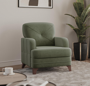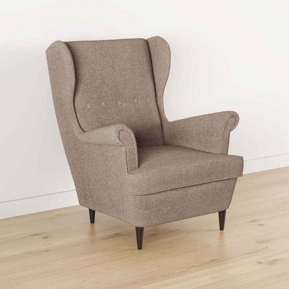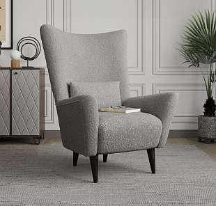 Модное кресло «Редфорд» удачно впишется в пространство любых интерьеров. Декоративные пуговицы и кант на подлокотниках, спинке и подушке придают изделию особую изысканность и утонченность. Кресло имеет глубокую посадку и высокую, элегантно изогнутую спинку, что усиливает комфорт во время отдыха. Мягкая обивка модели выполнена из ткани букле. Зернистая неоднородная фактура материала создает многослойный визуальный эффект. Ткань плавно повторяет мебельные формы, смягчая острые углы и подчеркивая округлые элементы. Задняя часть спинки выполнена в той же обивке, что и основная, позволяя расположить кресло в центре комнаты. Ножки оснащаются полипропиленовыми накладками, защищающими напольное покрытие от повреждений.