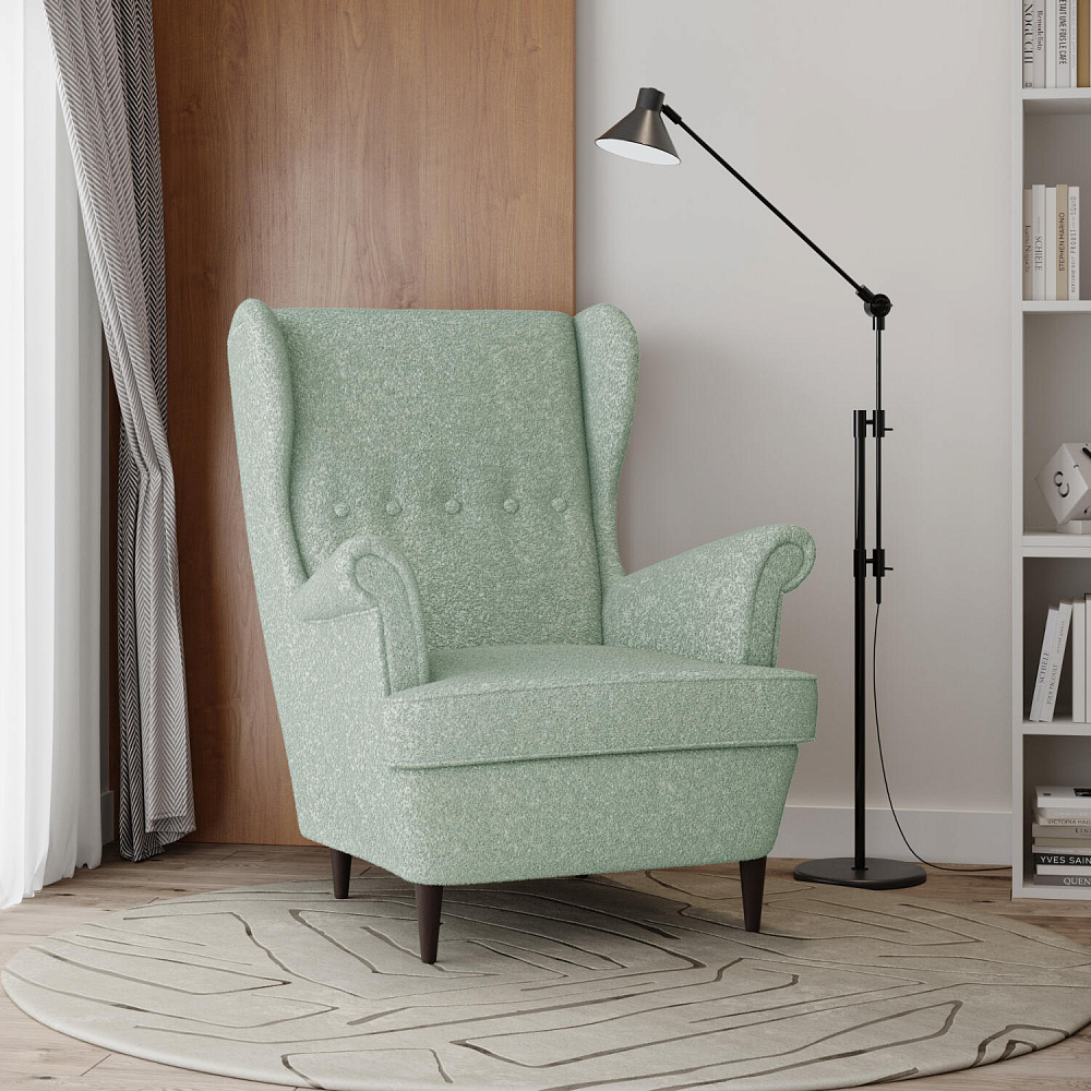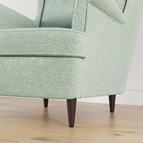 Модное кресло «Редфорд» удачно впишется в пространство любых интерьеров. Декоративные пуговицы и кант на подлокотниках, спинке и подушке придают изделию особую изысканность и утонченность. Кресло имеет глубокую посадку и высокую, элегантно изогнутую спинку, что усиливает комфорт во время отдыха. Мягкая обивка модели выполнена из ткани букле. Зернистая неоднородная фактура материала создает многослойный визуальный эффект. Ткань плавно повторяет мебельные формы, смягчая острые углы и подчеркивая округлые элементы. Задняя часть спинки выполнена в той же обивке, что и основная, позволяя расположить кресло в центре комнаты. Ножки оснащаются полипропиленовыми накладками, защищающими напольное покрытие от повреждений.