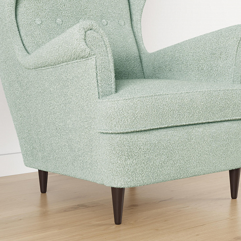 Обивка: букле Soul (100% полиэстер), плотность ткани — 570 г/м2, устойчивость к истиранию — 53 000 циклов по тесту Мартиндейла.