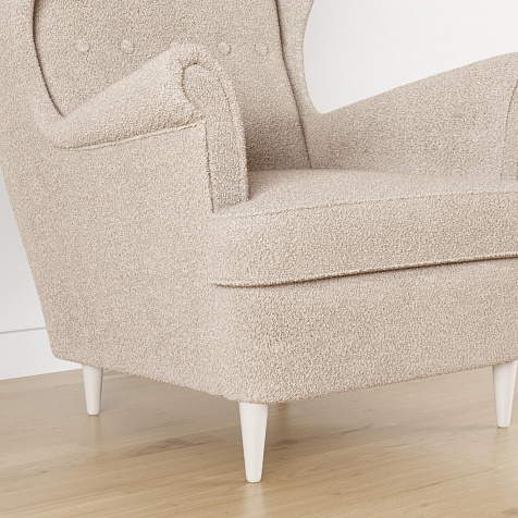 Обивка: букле Soul (100% полиэстер), плотность ткани — 570 г/м2, устойчивость к истиранию — 53 000 циклов по тесту Мартиндейла.