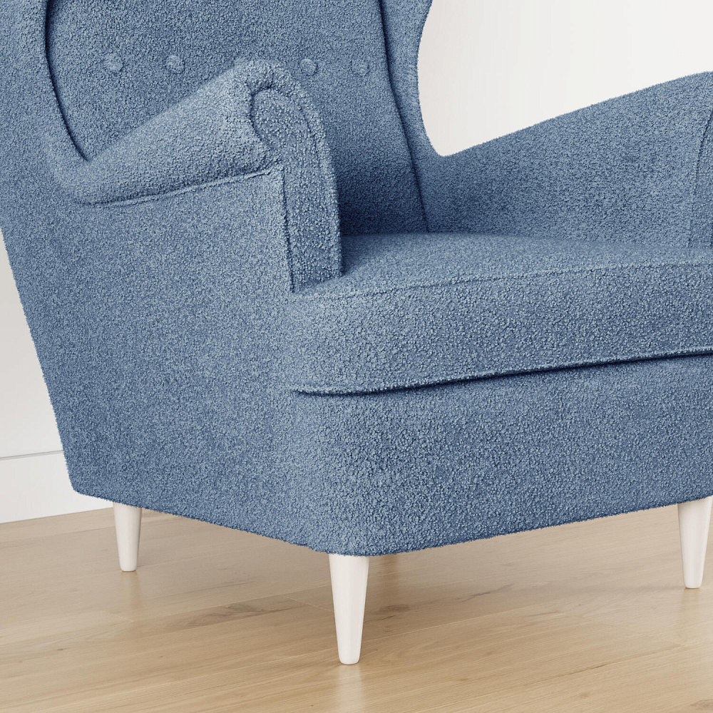 Обивка: букле Soul (100% полиэстер), плотность ткани — 570 г/м2, устойчивость к истиранию — 53 000 циклов по тесту Мартиндейла.