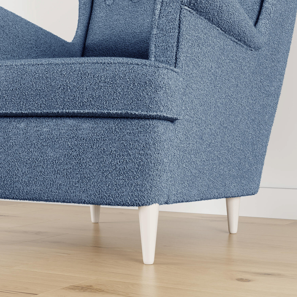 Модное кресло «Редфорд» удачно впишется в пространство любых интерьеров. Декоративные пуговицы и кант на подлокотниках, спинке и подушке придают изделию особую изысканность и утонченность. Кресло имеет глубокую посадку и высокую, элегантно изогнутую спинку, что усиливает комфорт во время отдыха. Мягкая обивка модели выполнена из ткани букле. Зернистая неоднородная фактура материала создает многослойный визуальный эффект. Ткань плавно повторяет мебельные формы, смягчая острые углы и подчеркивая округлые элементы. Задняя часть спинки выполнена в той же обивке, что и основная, позволяя расположить кресло в центре комнаты. Ножки оснащаются полипропиленовыми накладками, защищающими напольное покрытие от повреждений.