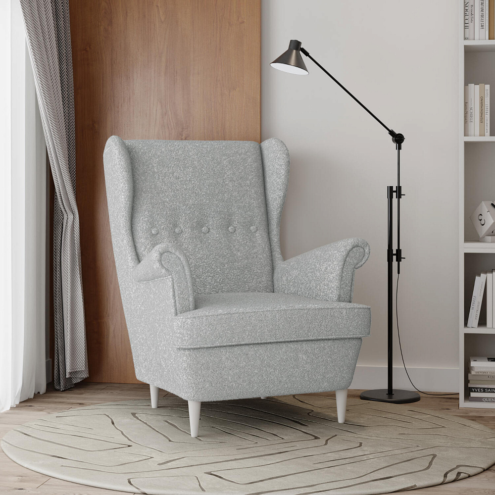 Модное кресло «Редфорд» удачно впишется в пространство любых интерьеров. Декоративные пуговицы и кант на подлокотниках, спинке и подушке придают изделию особую изысканность и утонченность. Кресло имеет глубокую посадку и высокую, элегантно изогнутую спинку, что усиливает комфорт во время отдыха. Мягкая обивка модели выполнена из ткани букле. Зернистая неоднородная фактура материала создает многослойный визуальный эффект. Ткань плавно повторяет мебельные формы, смягчая острые углы и подчеркивая округлые элементы. Задняя часть спинки выполнена в той же обивке, что и основная, позволяя расположить кресло в центре комнаты. Ножки оснащаются полипропиленовыми накладками, защищающими напольное покрытие от повреждений.