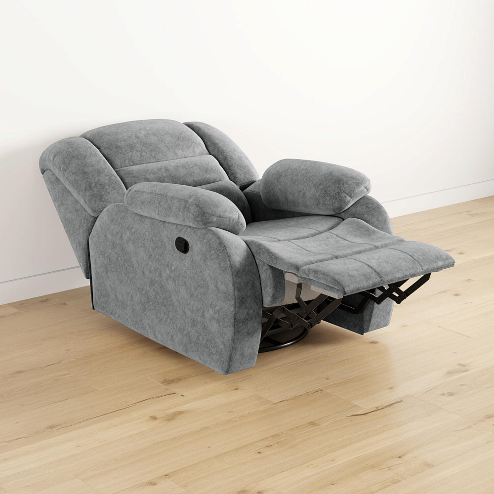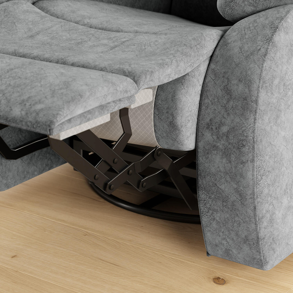 Идеальное место для отдыха — кресло «Ридберг» с современным механизмом «глайдер», который превращает обычное кресло в кресло-качалку, позволяя поворачивать его на 360 градусов и раскладывать в положение «релакс». Такое кресло обеспечивает максимальный комфорт и подходит для ежедневного использования. Положение кресла меняется с помощью небольшого усилия при поднятии рычага, находящегося на подлокотнике, и надавливании на спинку, при опускании спинки выдвигается подставка для ног. Функция «кресло-качалка» отключается при раскладывании кресла.