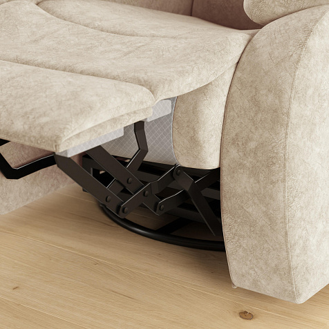Идеальное место для отдыха — кресло «Ридберг» с современным механизмом «глайдер», который превращает обычное кресло в кресло-качалку, позволяя поворачивать его на 360 градусов и раскладывать в положение «релакс». Такое кресло обеспечивает максимальный комфорт и подходит для ежедневного использования. Положение кресла меняется с помощью небольшого усилия при поднятии рычага, находящегося на подлокотнике, и надавливании на спинку, при опускании спинки выдвигается подставка для ног. Функция «кресло-качалка» отключается при раскладывании кресла.