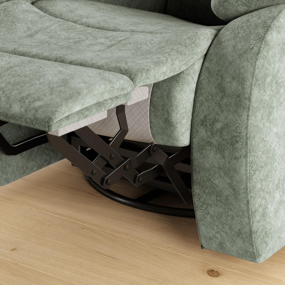 Идеальное место для отдыха — кресло «Ридберг» с современным механизмом «глайдер», который превращает обычное кресло в кресло-качалку, позволяя поворачивать его на 360 градусов и раскладывать в положение «релакс». Такое кресло обеспечивает максимальный комфорт и подходит для ежедневного использования. Положение кресла меняется с помощью небольшого усилия при поднятии рычага, находящегося на подлокотнике, и надавливании на спинку, при опускании спинки выдвигается подставка для ног. Функция «кресло-качалка» отключается при раскладывании кресла.
