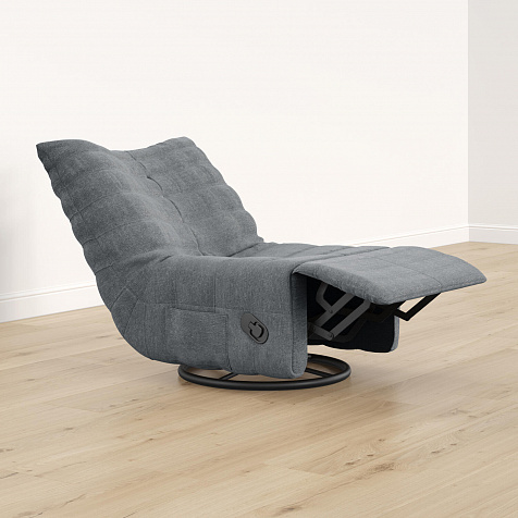 Положение «релакс». Для трансформации в положение полулежа необходимо вытянуть рычаг на боковой части кресла и надавить на спинку. Затем выдвинется удобная подставка для ног.