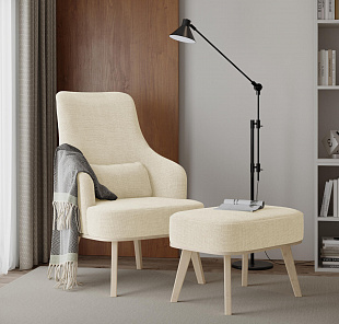 Пуф-маятник «Ларсен» (арт. мм0112) с аналогичным механизмом дополнит кресло. Механизмы кресла и пуфа синхронизируют амплитуду раскачивания для ещё большего расслабления. Пуф приобретается дополнительно.