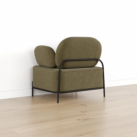 Зонирование пространства. Обратная сторона спинки выполнена в обивочной ткани. Кресло можно разместить как вплотную к стене, так и в центре комнаты, разделяя ее на разные зоны.