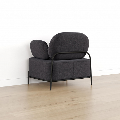 Зонирование пространства. Обратная сторона спинки выполнена в обивочной ткани. Кресло можно разместить как вплотную к стене, так и в центре комнаты, разделяя ее на разные зоны.