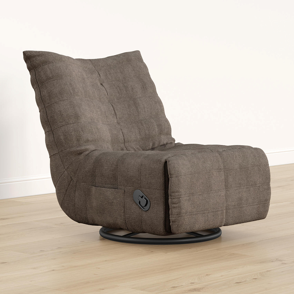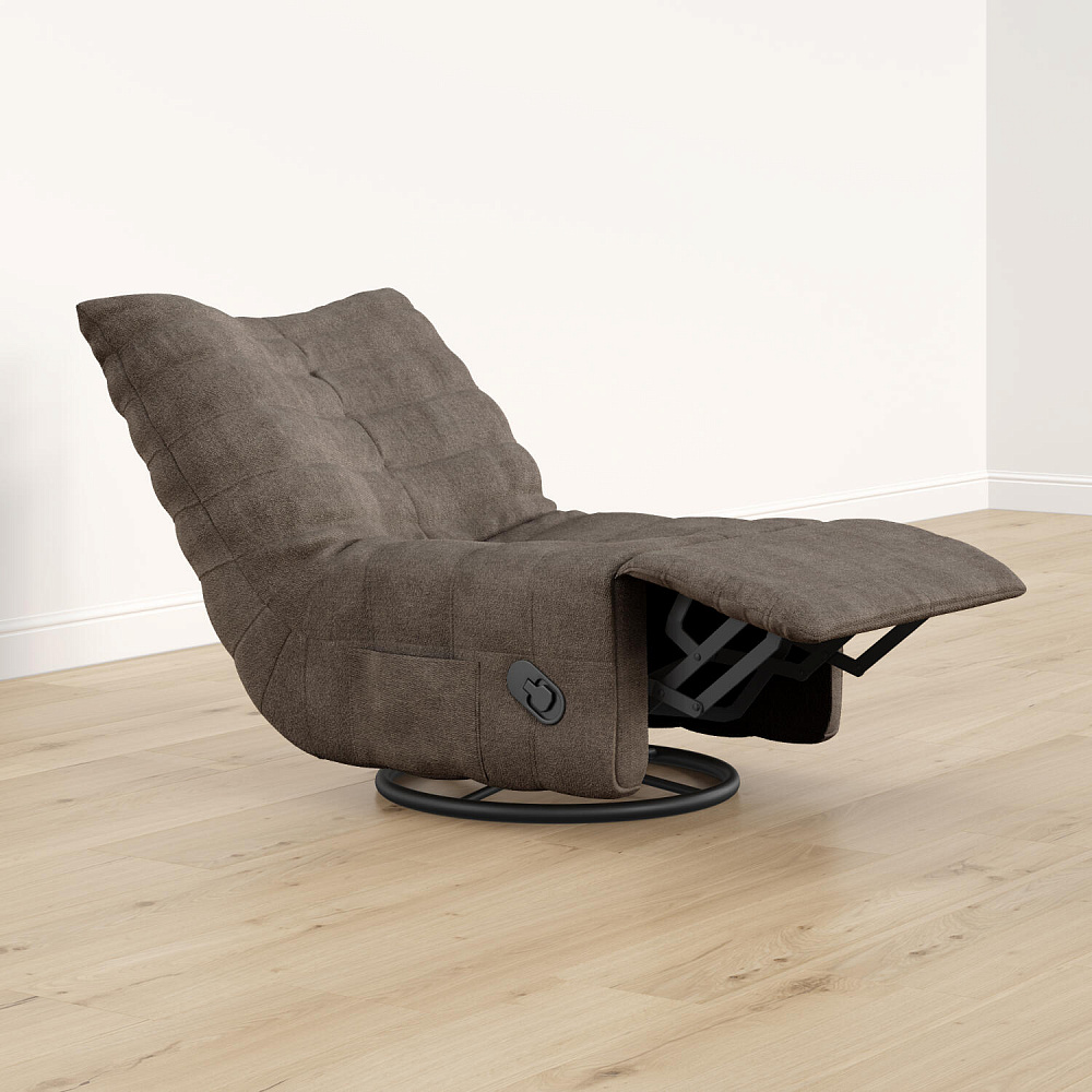 Положение «релакс». Для трансформации в положение полулежа необходимо вытянуть рычаг на боковой части кресла и надавить на спинку. Затем выдвинется удобная подставка для ног.