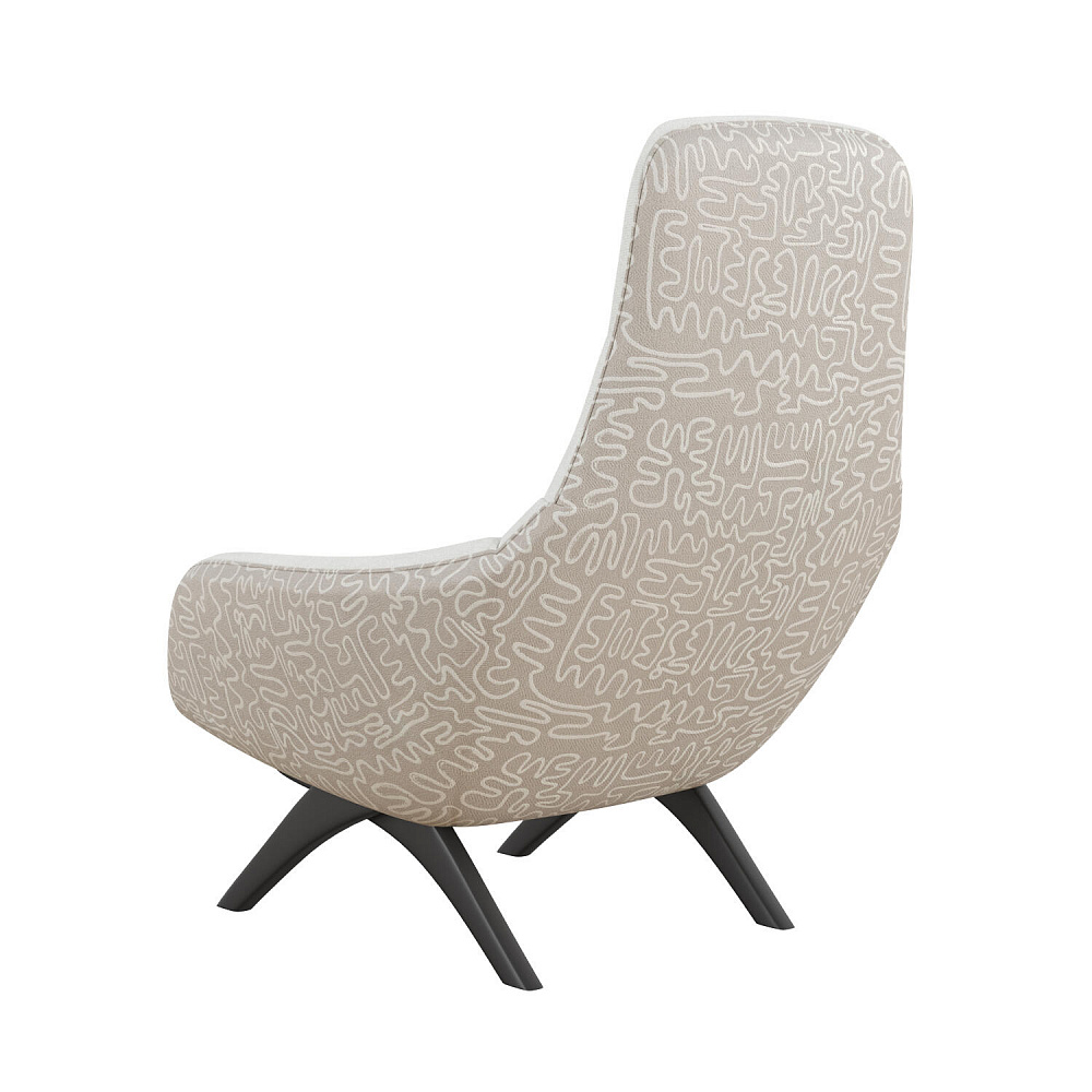 Двухцветная обивка из велюра и жаккарда. Приятный на ощупь однотонный велюр Danco гармонично сочетается с этническим рисунком на обратной стороне кресла.