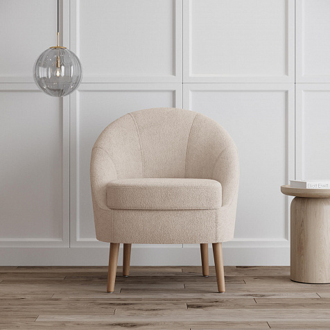Высокие опоры из натурального дерева визуально облегчают конструкцию и упрощают процесс уборки. Под креслом легко пройдет любой робот-пылесос.