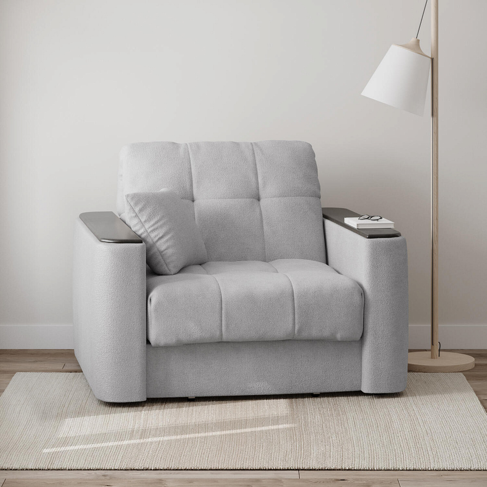 Кресло-кровать «Камелот» — лучшее сочетание комфорта, уюта и компактности в современном стиле. Модель в лаконичном дизайне поможет оформить уютную и удобную зону для сна и отдыха в небольших гостиных, спальнях или детских комнатах. Изюминкой модели являются деревянные накладки на подлокотниках, на которых можно разместить пульт от телевизора или чашку чая.