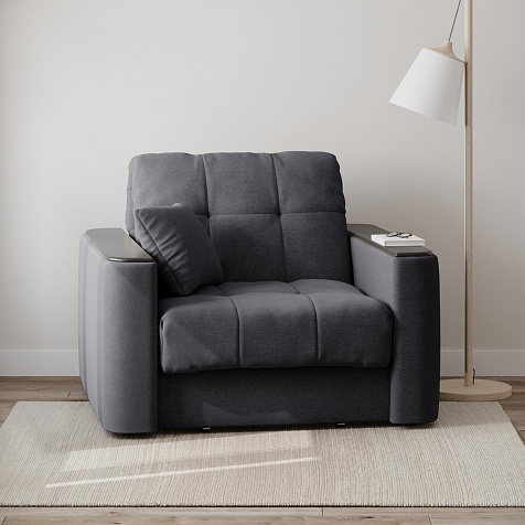 Кресло-кровать «Камелот» — лучшее сочетание комфорта, уюта и компактности в современном стиле. Модель в лаконичном дизайне поможет оформить уютную и удобную зону для сна и отдыха в небольших гостиных, спальнях или детских комнатах. Изюминкой модели являются деревянные накладки на подлокотниках, на которых можно разместить пульт от телевизора или чашку чая.