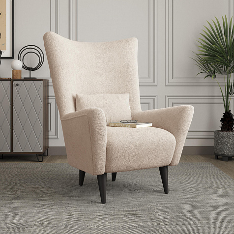 Удобное кресло «Дублин» с декоративной подушкой гармонично сочетается с особенностями любого интерьера. Дизайн модели — это единство плавных форм и линий, лаконичности и изысканности. Особый шарм обеспечивается за счёт вогнутой формы спинки и элегантных подлокотников, обеспечивающих высокий комфорт во время посадки. Благодаря высоким ножкам из натурального дерева, кресло словно парит в воздухе, в некоторой степени облегчая интерьер гостиной или спальни.