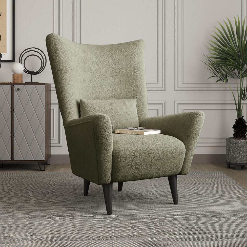Удобное кресло «Дублин» с декоративной подушкой гармонично сочетается с особенностями любого интерьера. Дизайн модели — это единство плавных форм и линий, лаконичности и изысканности. Особый шарм обеспечивается за счёт вогнутой формы спинки и элегантных подлокотников, обеспечивающих высокий комфорт во время посадки. Благодаря высоким ножкам из натурального дерева, кресло словно парит в воздухе, в некоторой степени облегчая интерьер гостиной или спальни.