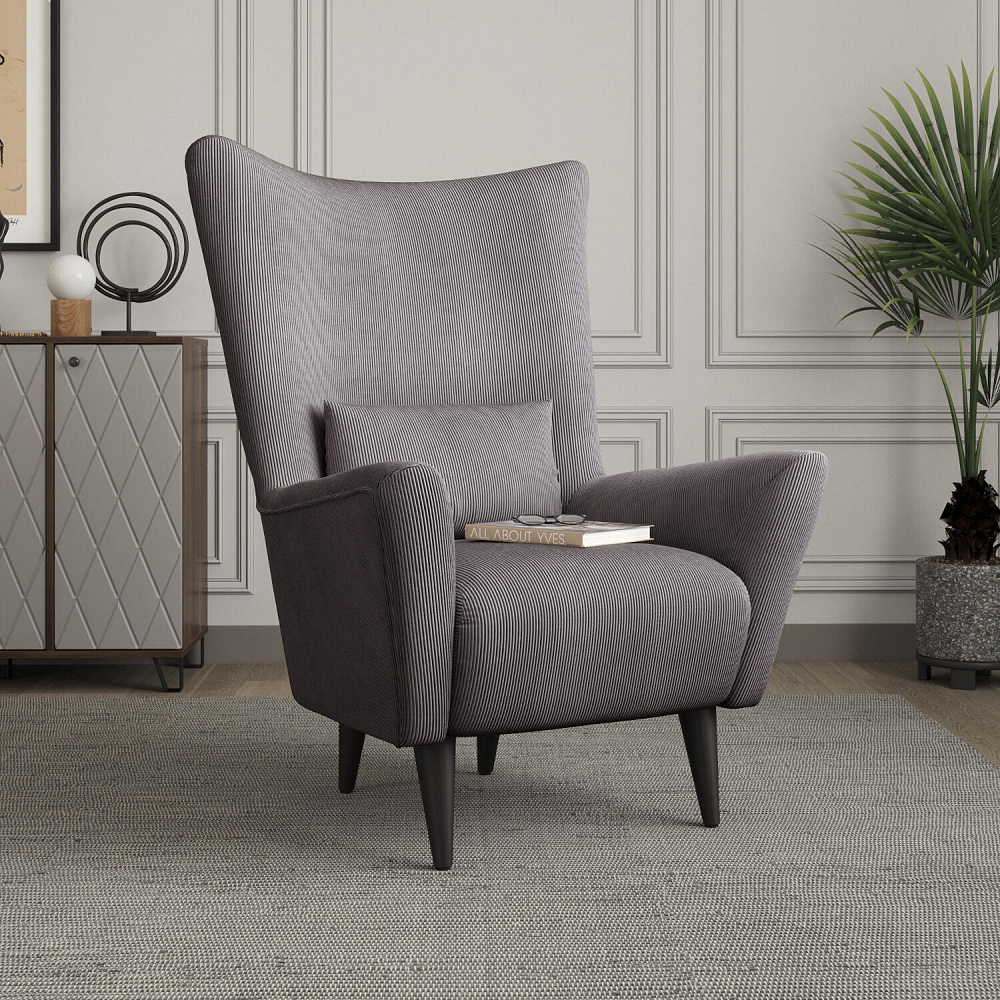 Удобное кресло «Дублин» с декоративной подушкой гармонично сочетается с особенностями любого интерьера. Дизайн модели — это единство плавных форм и линий, лаконичности и изысканности. Особый шарм обеспечивается за счёт вогнутой формы спинки и элегантных подлокотников, обеспечивающих высокий комфорт во время посадки. Благодаря высоким ножкам из натурального дерева, кресло словно парит в воздухе, в некоторой степени облегчая интерьер гостиной или спальни.