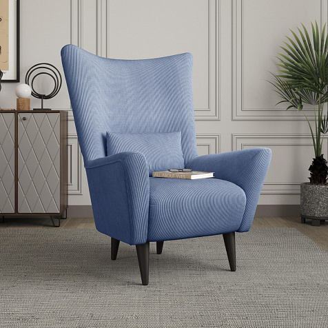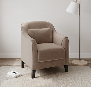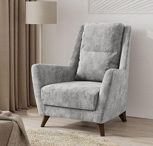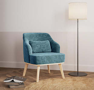 Удобное кресло «Дублин» с декоративной подушкой гармонично сочетается с особенностями любого интерьера. Дизайн модели — это единство плавных форм и линий, лаконичности и изысканности. Особый шарм обеспечивается за счёт вогнутой формы спинки и элегантных подлокотников, обеспечивающих высокий комфорт во время посадки. Благодаря высоким ножкам из натурального дерева, кресло словно парит в воздухе, в некоторой степени облегчая интерьер гостиной или спальни.