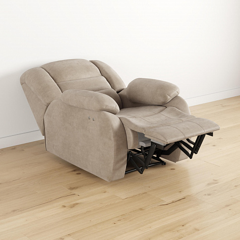 Мягкое кресло «Ридберг» с механизмом «электро-реклайнер» от американской компании «LEGGET & PLATT». Внутри кресла скрыт электропривод, обеспечивающий максимальный комфорт в использовании и фиксацию в любом положении. Кресло можно настроить под себя и насладиться просмотром фильма или чтением книги. Уникальная модель станет любимым местом в вашей доме.