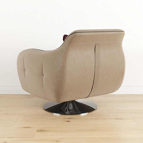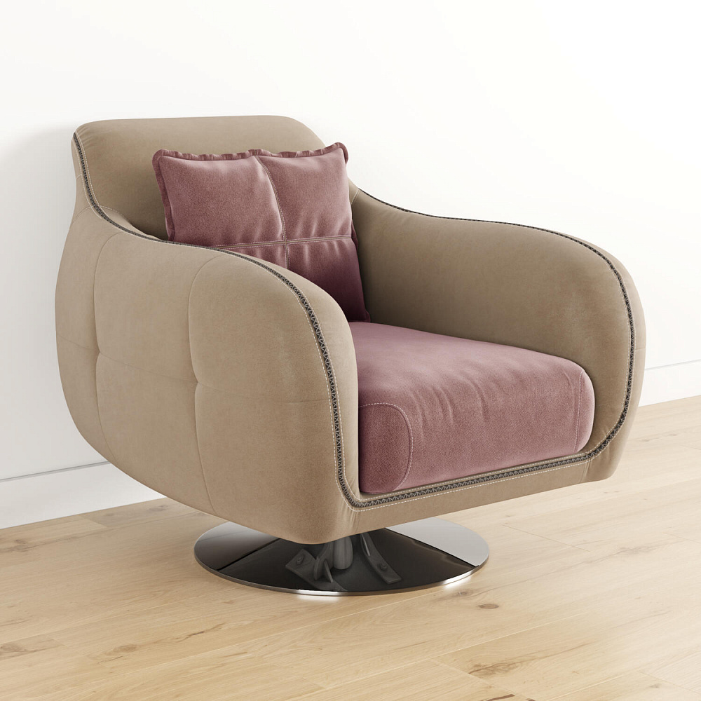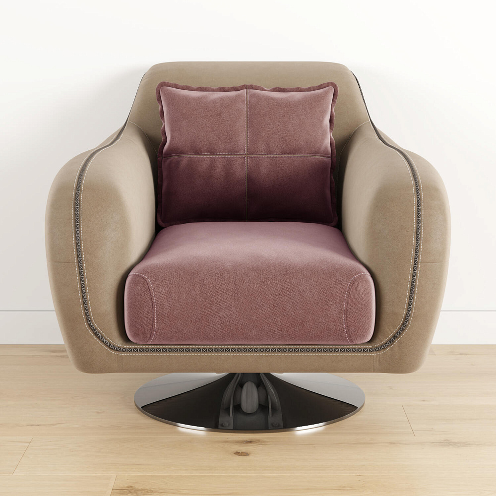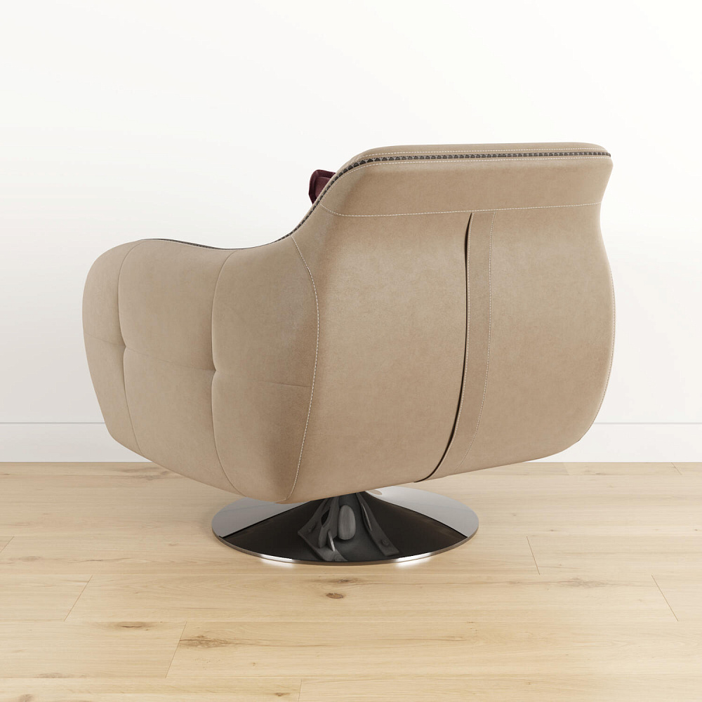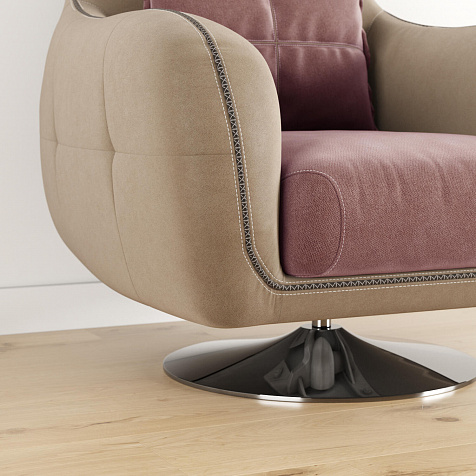 Комфортное кресло из коллекции «Неаполь» идеально подходит для использования в качестве интерьерного акцента, способного удовлетворить вкус даже самого взыскательного клиента. Вместе с другими моделями коллекции кресло позволит создать в помещении целый мебельный ансамбль, сочетающийся изяществом линий и оригинальностью форм. Приспинная подушка придаёт модели особую мягкость, позволяя регулировать глубину посадки. Оригинальная хромированная ножка кресла, являющаяся опорой, обеспечивает вращение на 360°. Для обивки спинки, подлокотников и царги используется искусственная замша «Tesoro». Выигрышный внешний вид «Tesoro» радует глаз приятной игрой оттенков. Каждое прикосновение к его благородной бархатистой фактуре приносит истинное удовольствие.