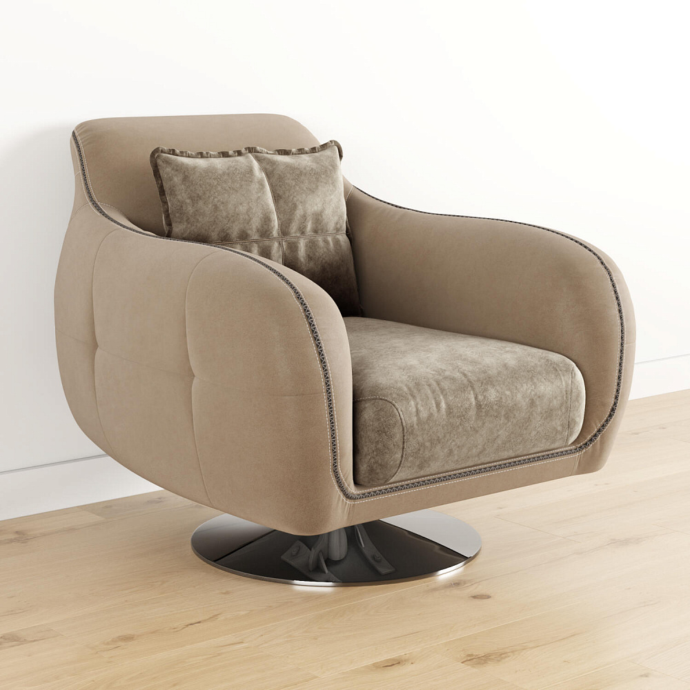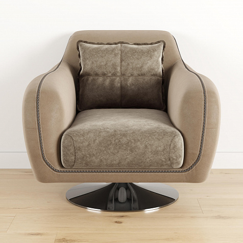 Комфортное кресло из коллекции «Неаполь» идеально подходит для использования в качестве интерьерного акцента, способного удовлетворить вкус даже самого взыскательного клиента. Вместе с другими моделями коллекции кресло позволит создать в помещении целый мебельный ансамбль, сочетающийся изяществом линий и оригинальностью форм. Приспинная подушка придаёт модели особую мягкость, позволяя регулировать глубину посадки. Оригинальная хромированная ножка кресла, являющаяся опорой, обеспечивает вращение на 360°. Для обивки спинки, подлокотников и царги используется искусственная замша «Tesoro». Выигрышный внешний вид «Tesoro» радует глаз приятной игрой оттенков. Каждое прикосновение к его благородной бархатистой фактуре приносит истинное удовольствие.