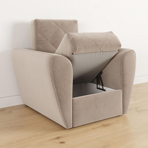 Удобное и функциональное кресло «Тэйлор» составит уютный комплект с диваном, сформировав зону отдыха и общения в любом интерьере. Мягкая, приятная на ощупь фактура микровелюровой обивки выполнена в спокойной цветовой гамме, способной украсить пространство без ярко выраженного стилевого направления. Декоративная подушка придает особую мягкость посадке и позволит регулировать ее глубину. В кресле предусмотрен ящик для хранения аксессуаров и мелочей.