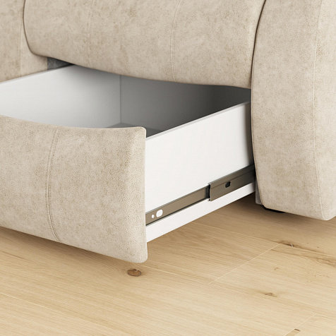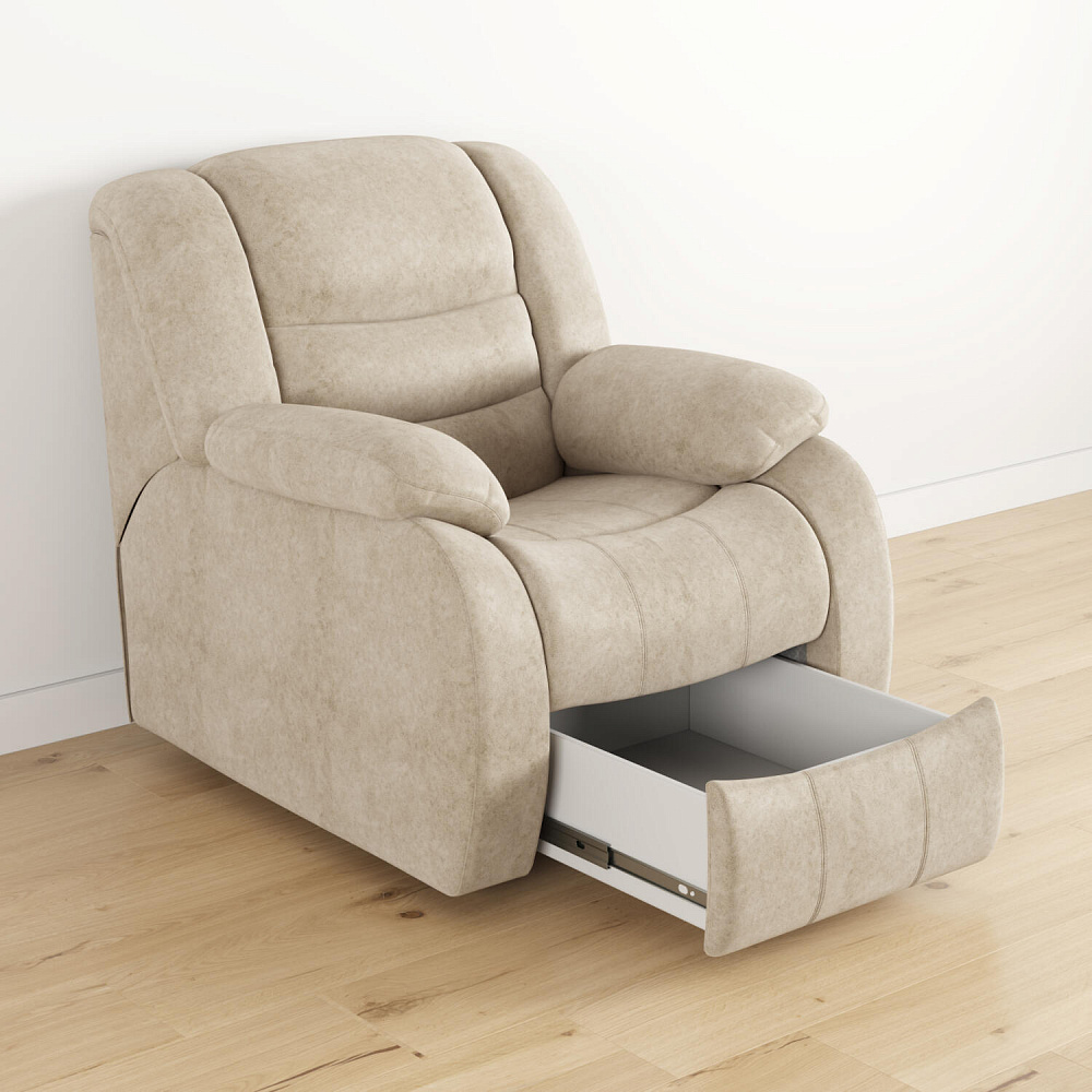 Удобное кресло «Ридберг» с ящиком будет для вас не только местом для отдыха, но и зоной для хранения белья и личных вещей. Ящик легко открывается с помощью надежного выкатного механизма на шариковых направляющих.