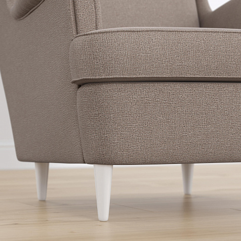 Модное кресло «Редфорд» удачно впишется в пространство любых интерьеров. Декоративные пуговицы и кант на подлокотниках, спинке и подушке придает изделию особую изысканность и утонченность. Кресло имеет глубокую посадку и высокую, элегантно изогнутую спинку, что усиливает комфорт во время отдыха. Мягкая обивка модели выполнена из велюра с принтом, имитирующим рогожку. Материал обладает отличными эксплуатационными характеристиками — он приятный и теплый, гипоаллергенный и износостойкий. Задняя часть спинки выполнена в той же обивке, что и основная, позволяя расположить кресло в центре комнаты, не испортив внешний вид интерьера. Ножки оснащаются полипропиленовыми накладками, защищающими напольное покрытие от повреждений.