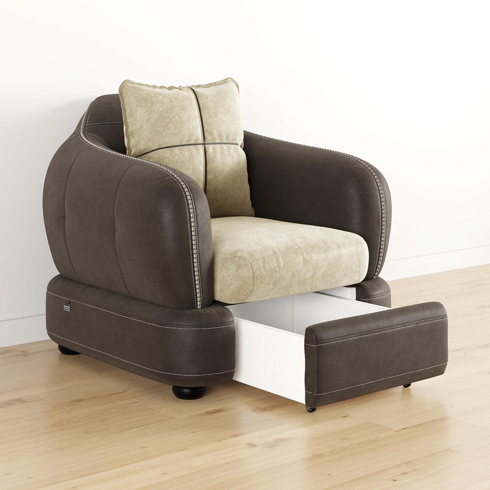 Комфортное, функциональное кресло «Неаполь» с ящиком позволит создать в помещении идеальную мебельную композицию, отличающуюся изяществом линий и оригинальностью форм. Кресло дополнено коробом для хранения вещей, который открывается при помощи усиленных металлических направляющих, обеспечивающих полное выдвижение. Для обивки спинки, подлокотников и царги используется искусственная замша «Tesoro». Выигрышный внешний вид «Tesoro» радует глаз приятной игрой оттенков. Каждое прикосновение к его благородной бархатистой фактуре приносит истинное удовольствие.