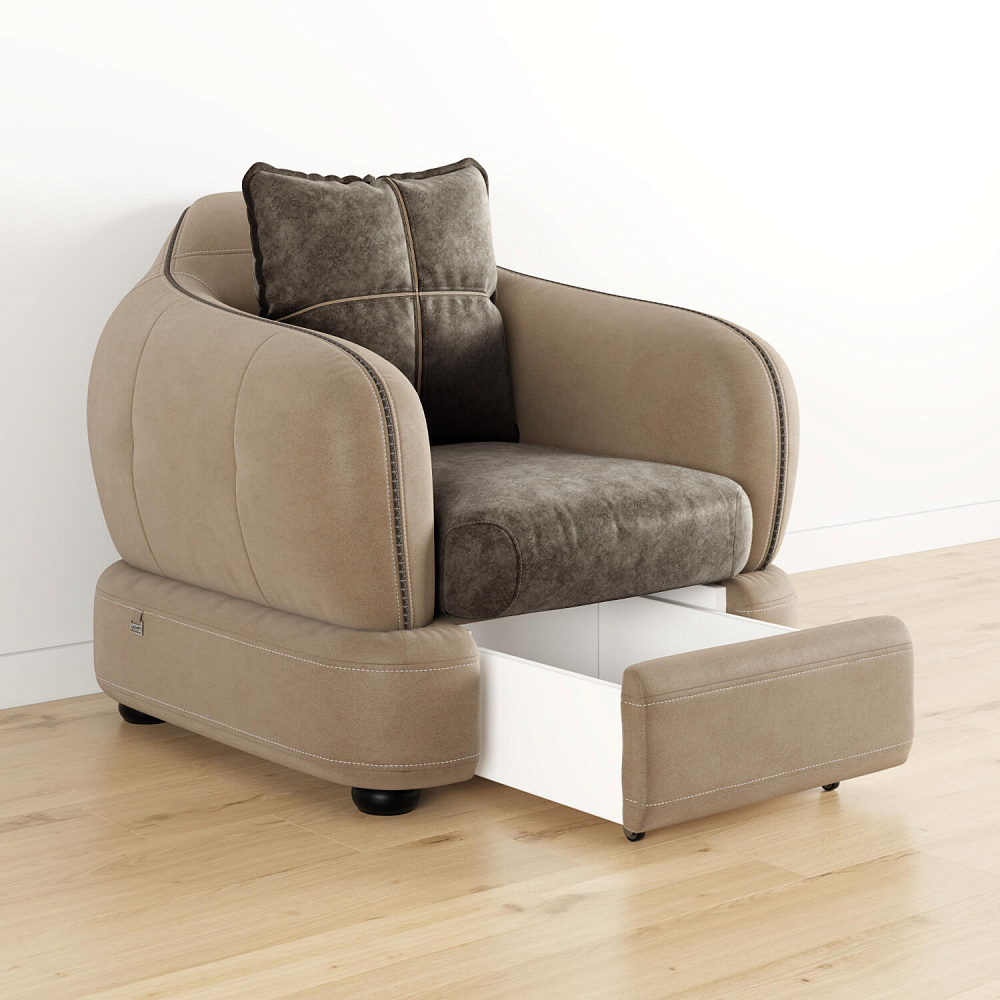 Комфортное, функциональное кресло «Неаполь» с ящиком позволит создать в помещении идеальную мебельную композицию, отличающуюся изяществом линий и оригинальностью форм. Кресло дополнено коробом для хранения вещей, который открывается при помощи усиленных металлических направляющих, обеспечивающих полное выдвижение. Для обивки спинки, подлокотников и царги используется искусственная замша «Tesoro». Выигрышный внешний вид «Tesoro» радует глаз приятной игрой оттенков. Каждое прикосновение к его благородной бархатистой фактуре приносит истинное удовольствие.