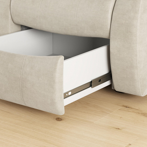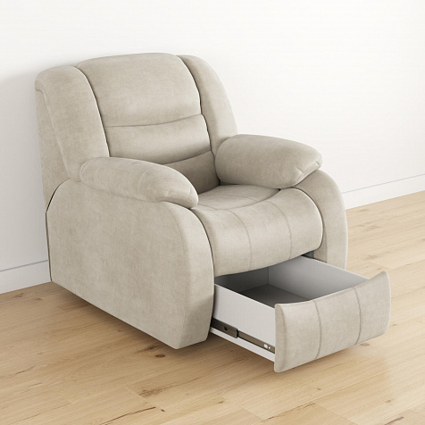 Удобное кресло «Ридберг» с ящиком будет для вас не только местом для отдыха, но и зоной для хранения белья и личных вещей. Ящик легко открывается с помощью надежного выкатного механизма на шариковых направляющих.