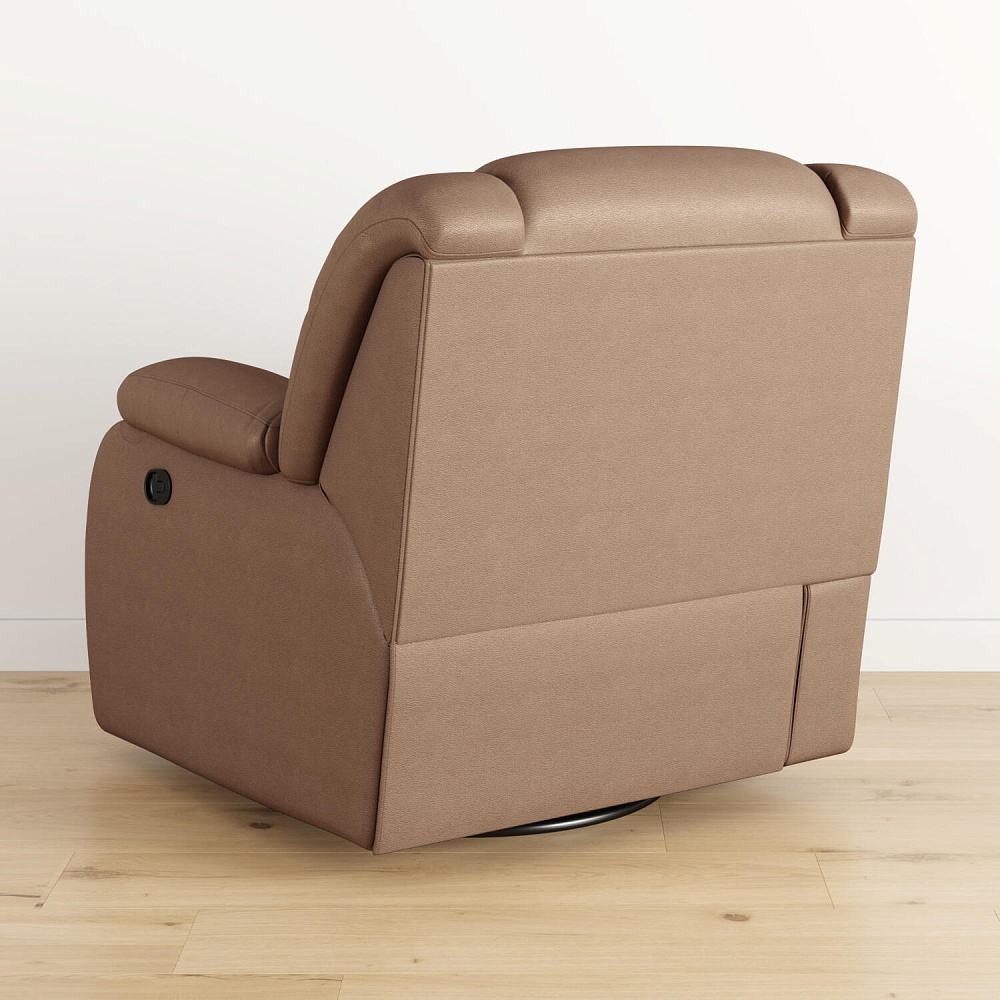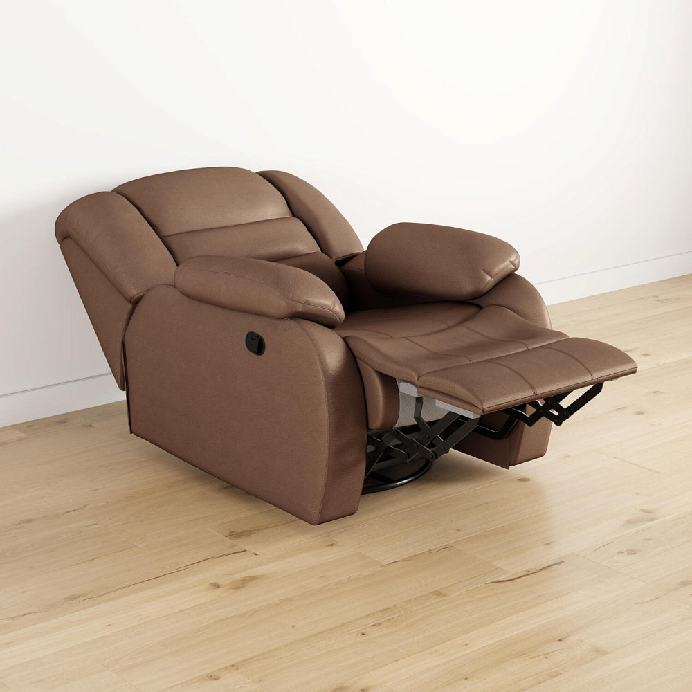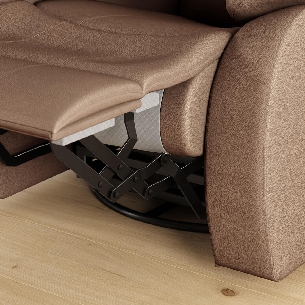 Пять положений релаксации. Отдыхая на кресле, можно экспериментировать с пятью положениями механизма трансформации - поднятое положение изножья, положение для просмотра телевизора - любой угол наклона, положение «релакс», поворот на 360 градусов и функция кресла-качалки.