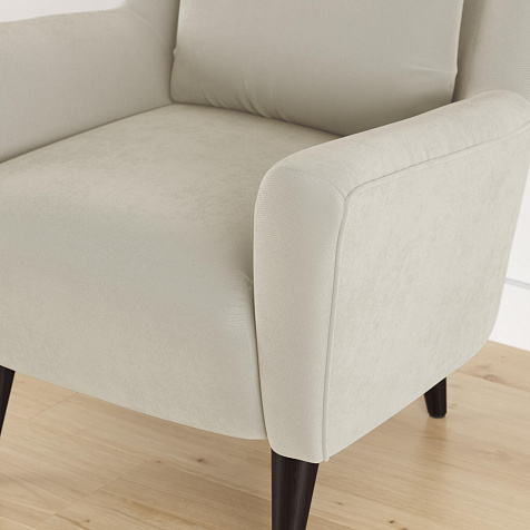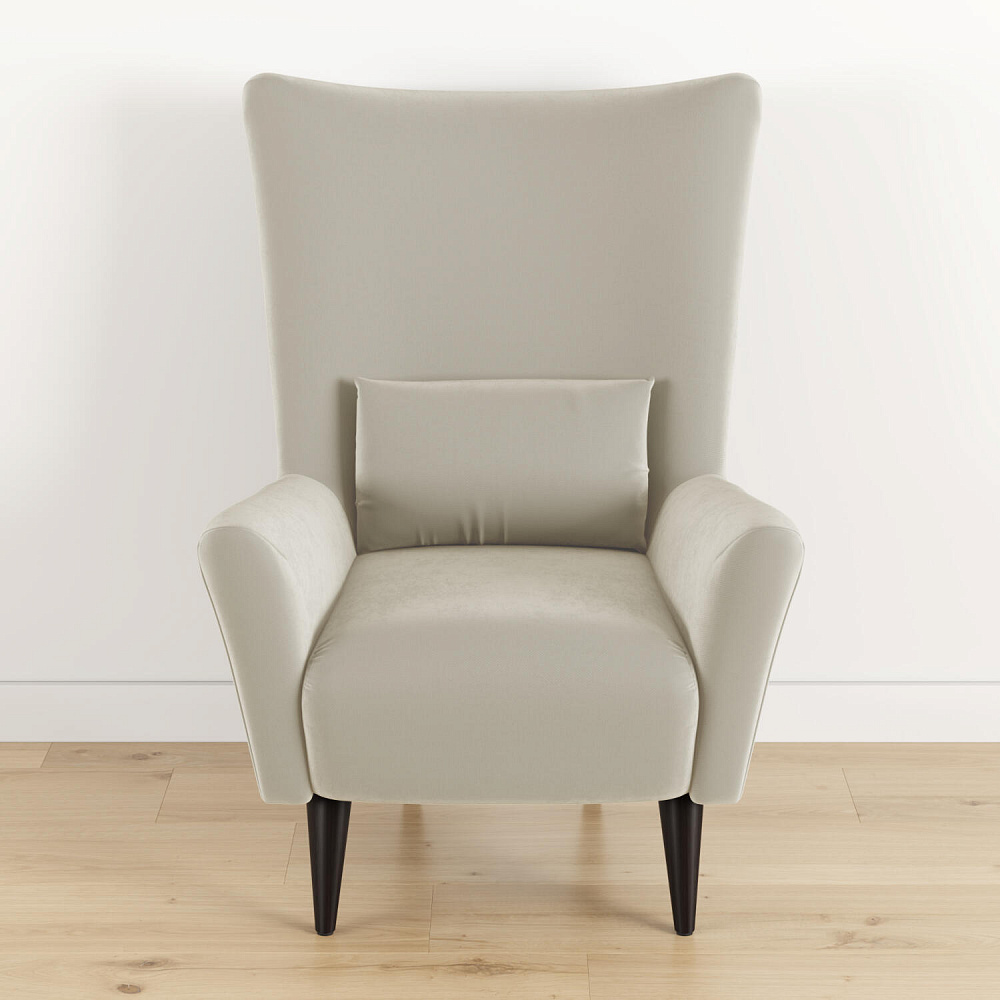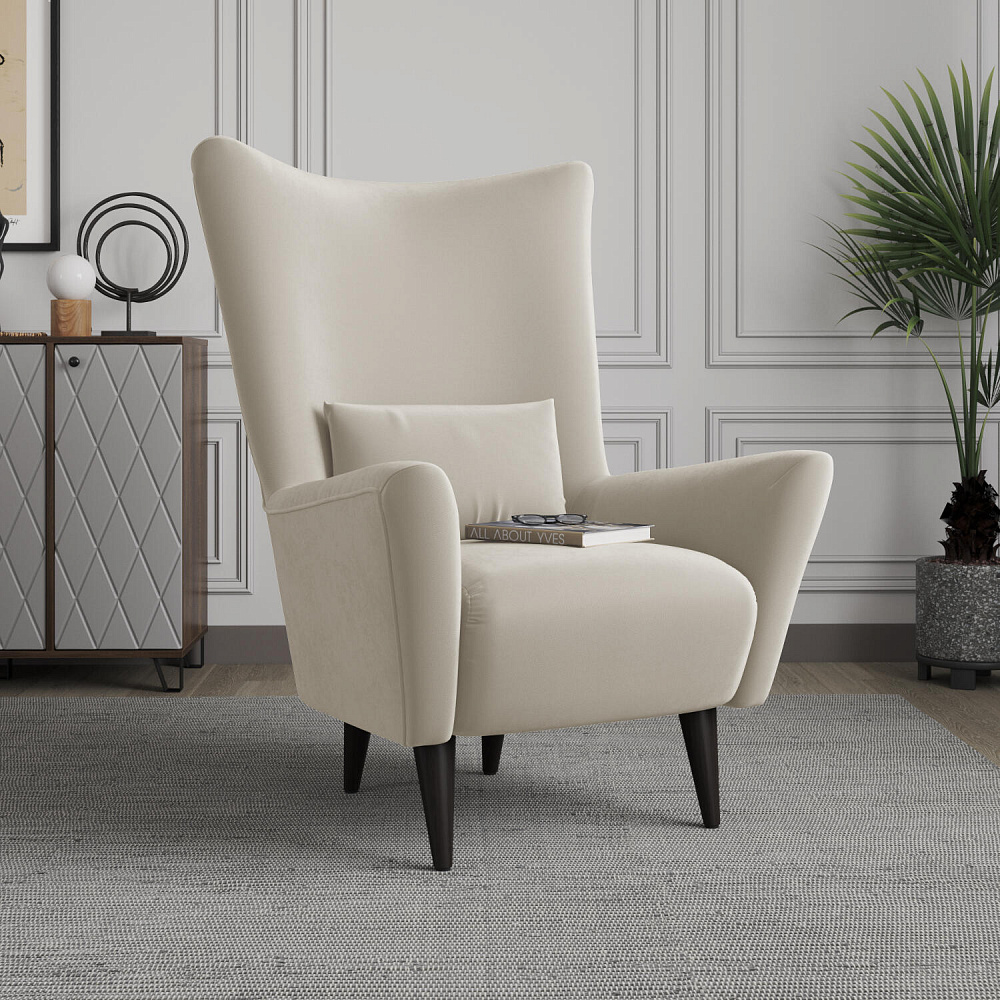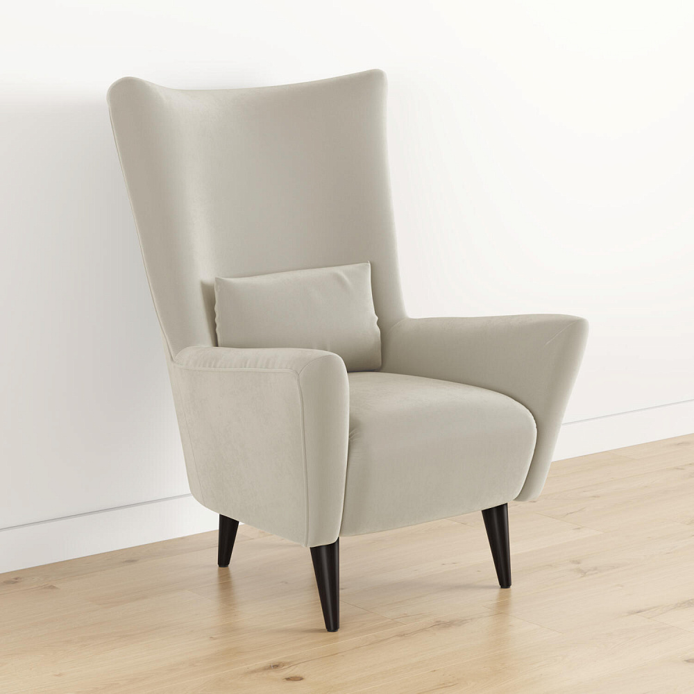 Удобное кресло «Дублин» с декоративной подушкой гармонично сочетается с особенностями любого интерьера. Дизайн модели — это единство плавных форм и линий, лаконичности и изысканности. Особый шарм обеспечивается за счёт вогнутой формы спинки и элегантных подлокотников, обеспечивающих высокий комфорт во время посадки. Благодаря высоким ножкам из натурального дерева, кресло словно парит в воздухе, в некоторой степени облегчая интерьер гостиной или спальни.