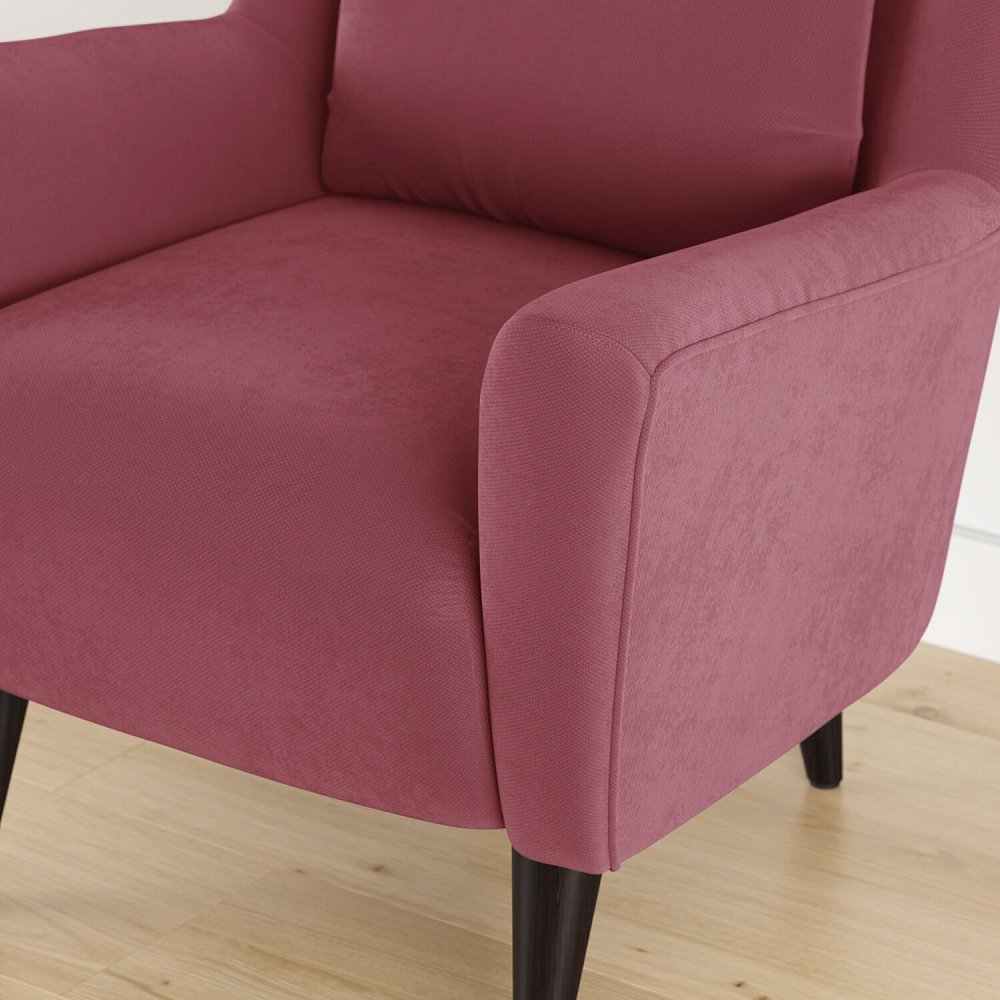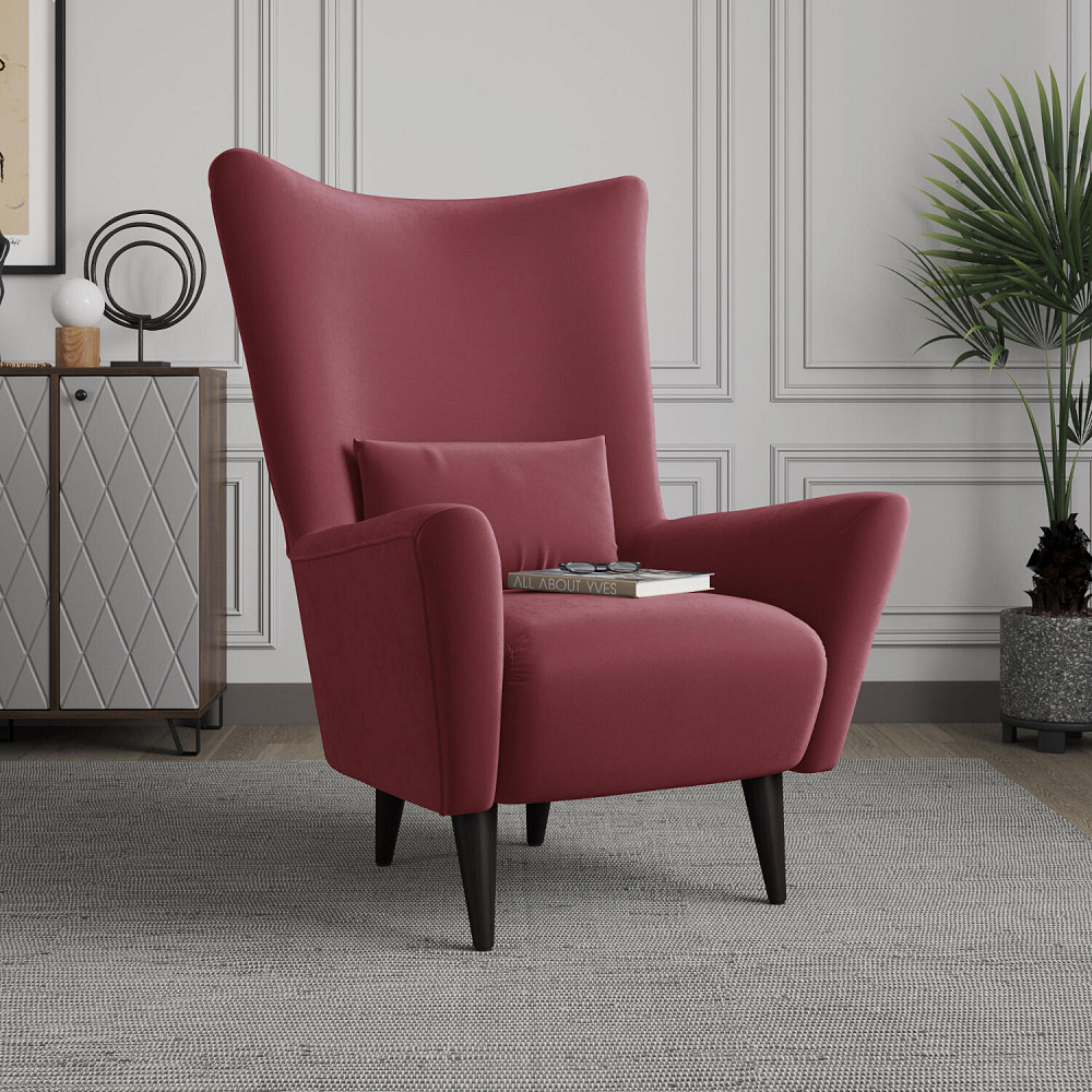Удобное кресло «Дублин» с декоративной подушкой гармонично сочетается с особенностями любого интерьера. Дизайн модели — это единство плавных форм и линий, лаконичности и изысканности. Особый шарм обеспечивается за счёт вогнутой формы спинки и элегантных подлокотников, обеспечивающих высокий комфорт во время посадки. Благодаря высоким ножкам из натурального дерева, кресло словно парит в воздухе, в некоторой степени облегчая интерьер гостиной или спальни.