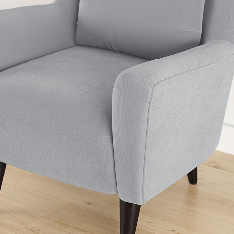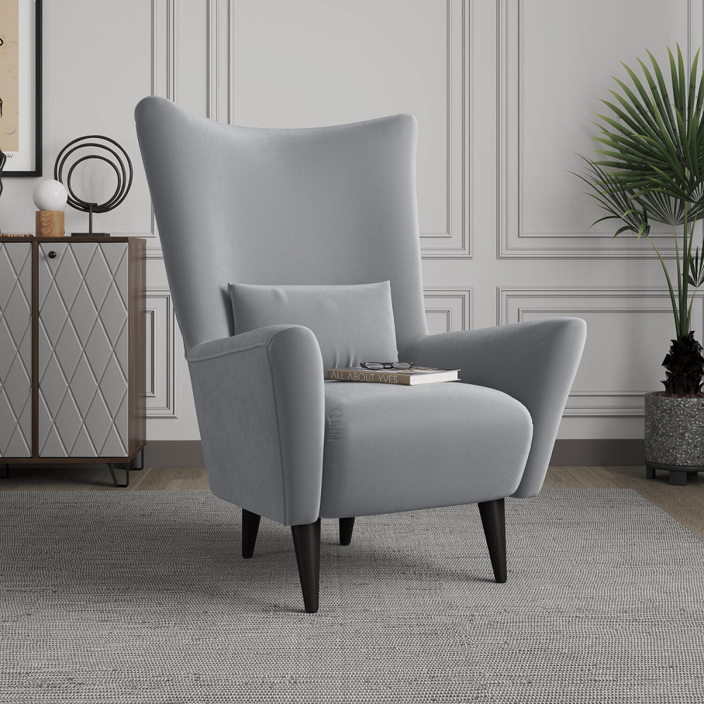 Удобное кресло «Дублин» с декоративной подушкой гармонично сочетается с особенностями любого интерьера. Дизайн модели — это единство плавных форм и линий, лаконичности и изысканности. Особый шарм обеспечивается за счёт вогнутой формы спинки и элегантных подлокотников, обеспечивающих высокий комфорт во время посадки. Благодаря высоким ножкам из натурального дерева, кресло словно парит в воздухе, в некоторой степени облегчая интерьер гостиной или спальни.