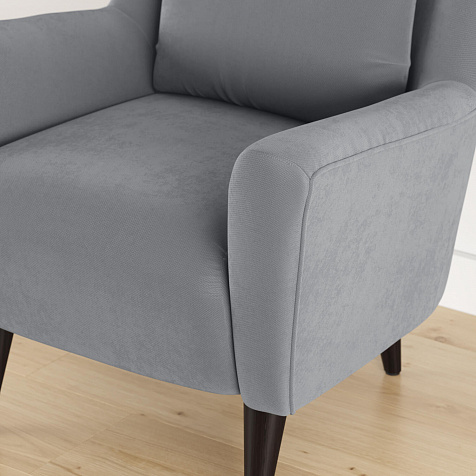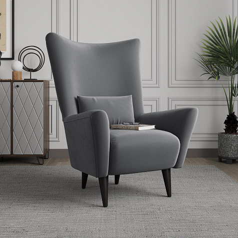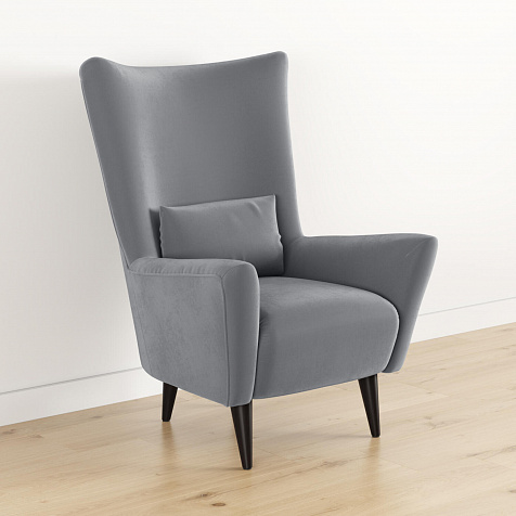 Удобное кресло «Дублин» с декоративной подушкой гармонично сочетается с особенностями любого интерьера. Дизайн модели — это единство плавных форм и линий, лаконичности и изысканности. Особый шарм обеспечивается за счёт вогнутой формы спинки и элегантных подлокотников, обеспечивающих высокий комфорт во время посадки. Благодаря высоким ножкам из натурального дерева, кресло словно парит в воздухе, в некоторой степени облегчая интерьер гостиной или спальни.