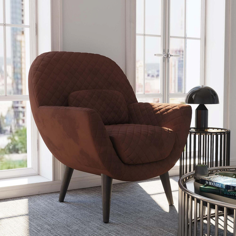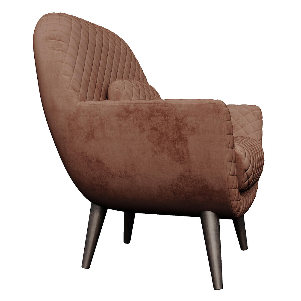 Изысканное кресло «Гамбург» с мягкой декоративной подушкой украсит собой интерьер гостиной, офиса, спальни. Дизайн модели — это сочетание закругленных форм и плавных линий, отсутствие острых углов, воплощение современной роскоши и стиля. Ромбовидная отстрочка всех элементов придает креслу дополнительный шарм. Распахнутые подлокотники, небольшой наклон объёмного сиденья и спинки обеспечат комфортную посадку во время отдыха. Высокие чёрные ножки из металла органично выделят кресло среди других предметов мебели.