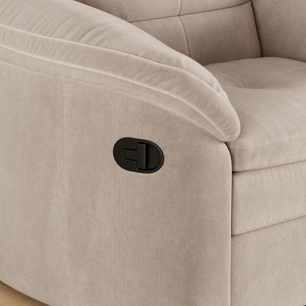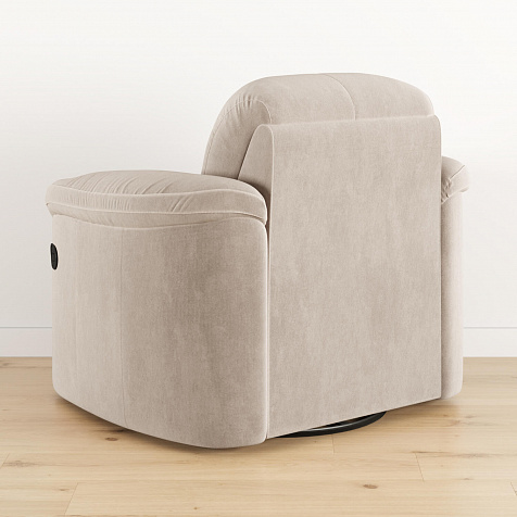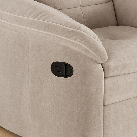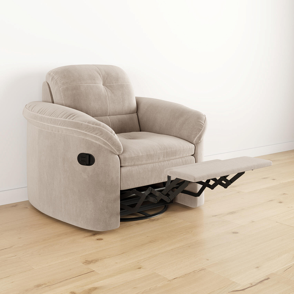 Идеальное место для отдыха - кресло «Коннери» с современным механизмом «Глайдер» от компании «LEGGET & PLATT», который превращает обычное кресло в кресло-качалку или раскладывает его в положение «релакс». Такая реализация обеспечивает максимальный комфорт и подходит для ежедневного использования. Режим «кресло-качалка» позволяет поворачивать кресло на 360 градусов, но отключается при его раскладывании. Положение кресла меняется с помощью небольшого усилия при поднятии рычага, находящегося на подлокотнике, и надавливании на спинку. При опускании спинки выдвигается удобная подставка для ног.