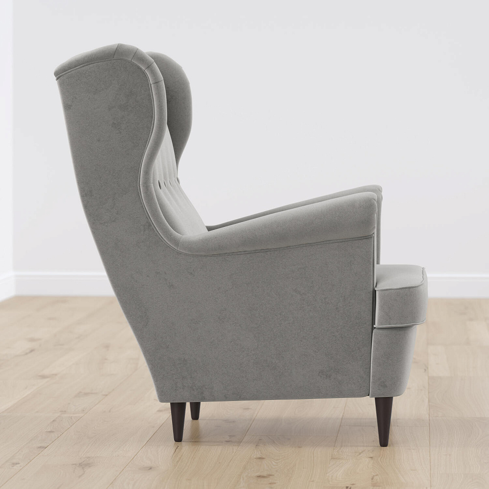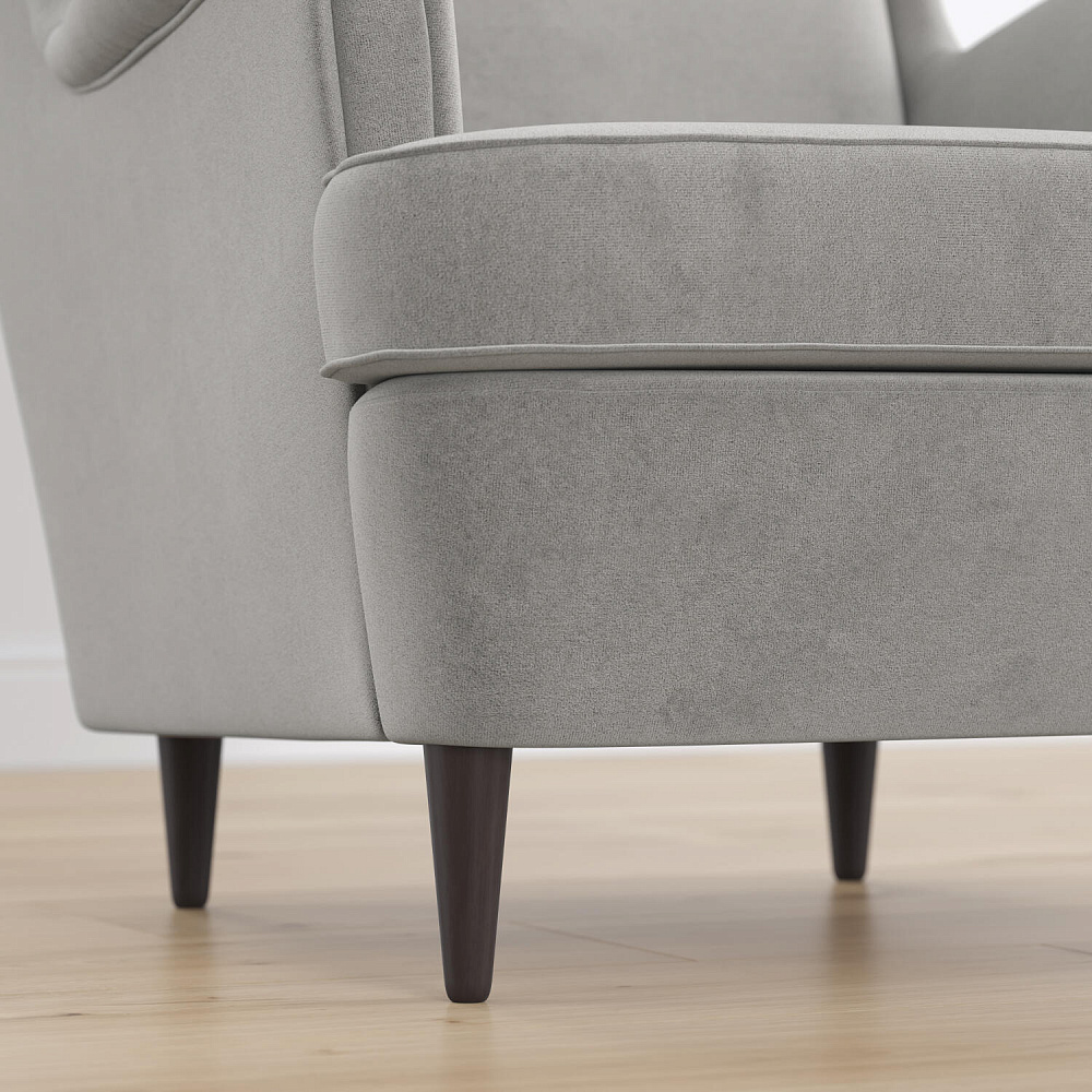 Модное кресло «Редфорд» удачно впишется в пространство любых интерьеров. Декоративные пуговицы и кант на подлокотниках, спинке и подушке придают изделию особую изысканность и утонченность. Кресло имеет глубокую посадку и высокую, элегантно изогнутую спинку, что усиливает комфорт во время отдыха. Мягкая обивка модели выполнена из нежного велюра с эффектом дорогой матовой фактуры. Материал обладает отличными эксплуатационными характеристиками — он приятный и тёплый, гипоаллергенный и износостойкий. Задняя часть спинки выполнена в той же обивке, что и основная, позволяя расположить кресло в центре комнаты. Ножки оснащаются полипропиленовыми накладками, защищающими напольное покрытие от повреждений.