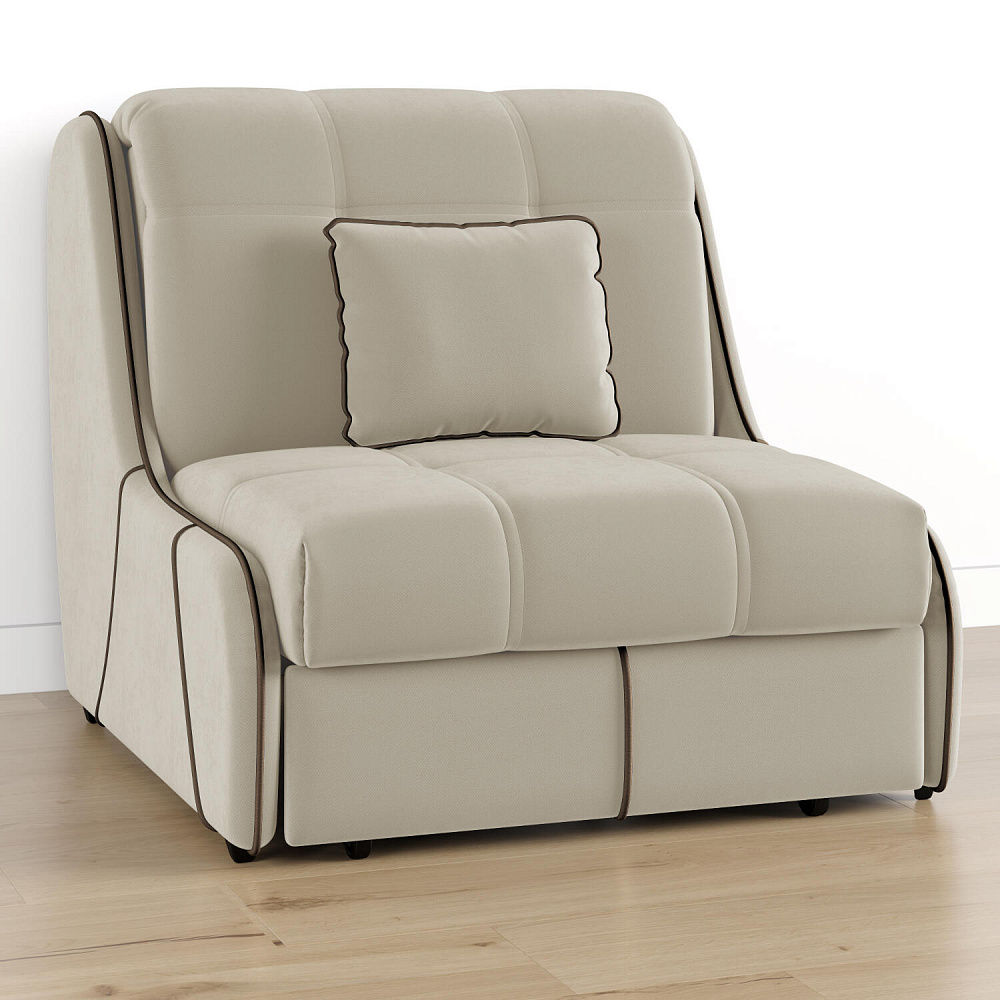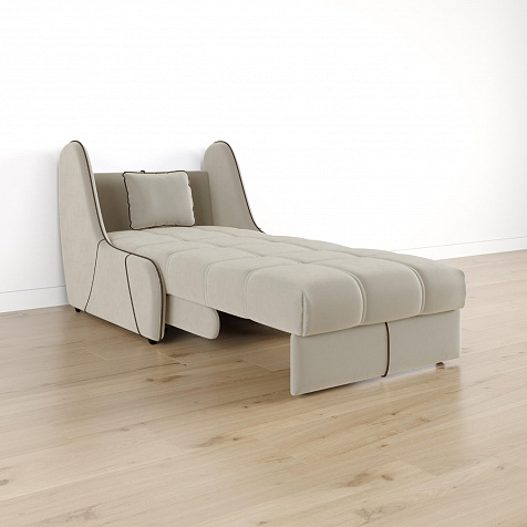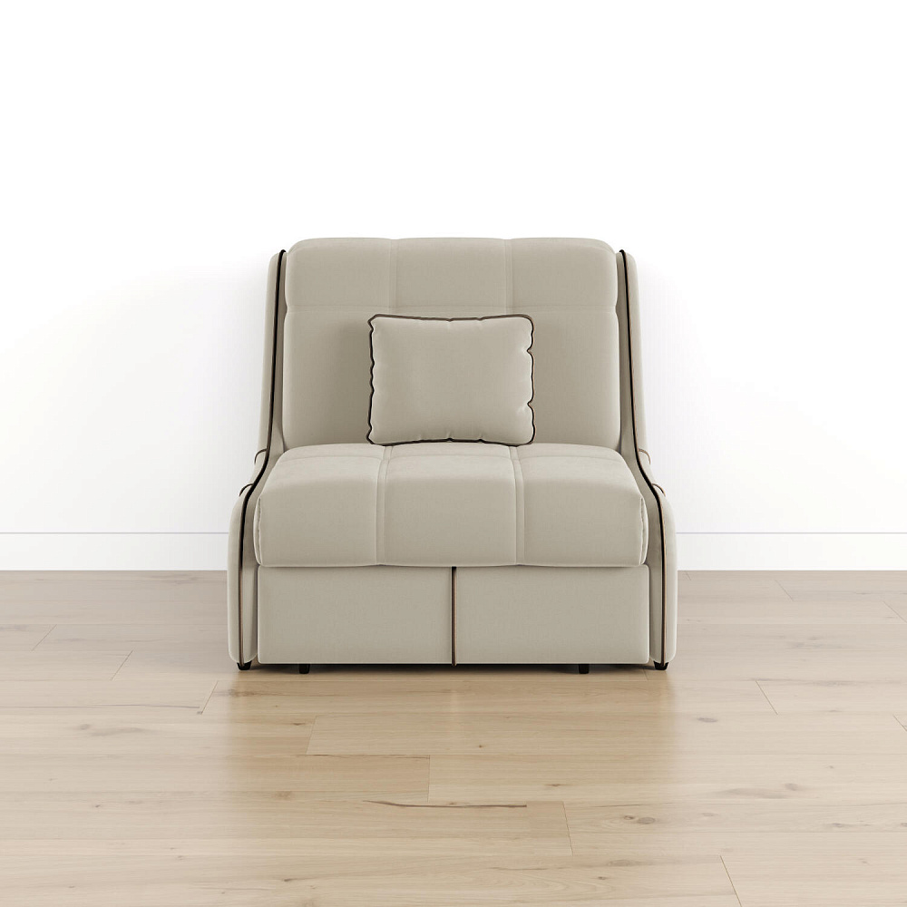 Кресло-кровать «Бонн» — лучшее сочетание компактности и функциональности. Благодаря отсутствию подлокотников оно не займет много места в комнате. С помощью удобного механизма трансформации «Аккордеон» кресло легко превращается в односпальную кровать с ровным спальным местом. Плавность форм и лаконичность модели подчеркивают акцентные линии декоративного канта.