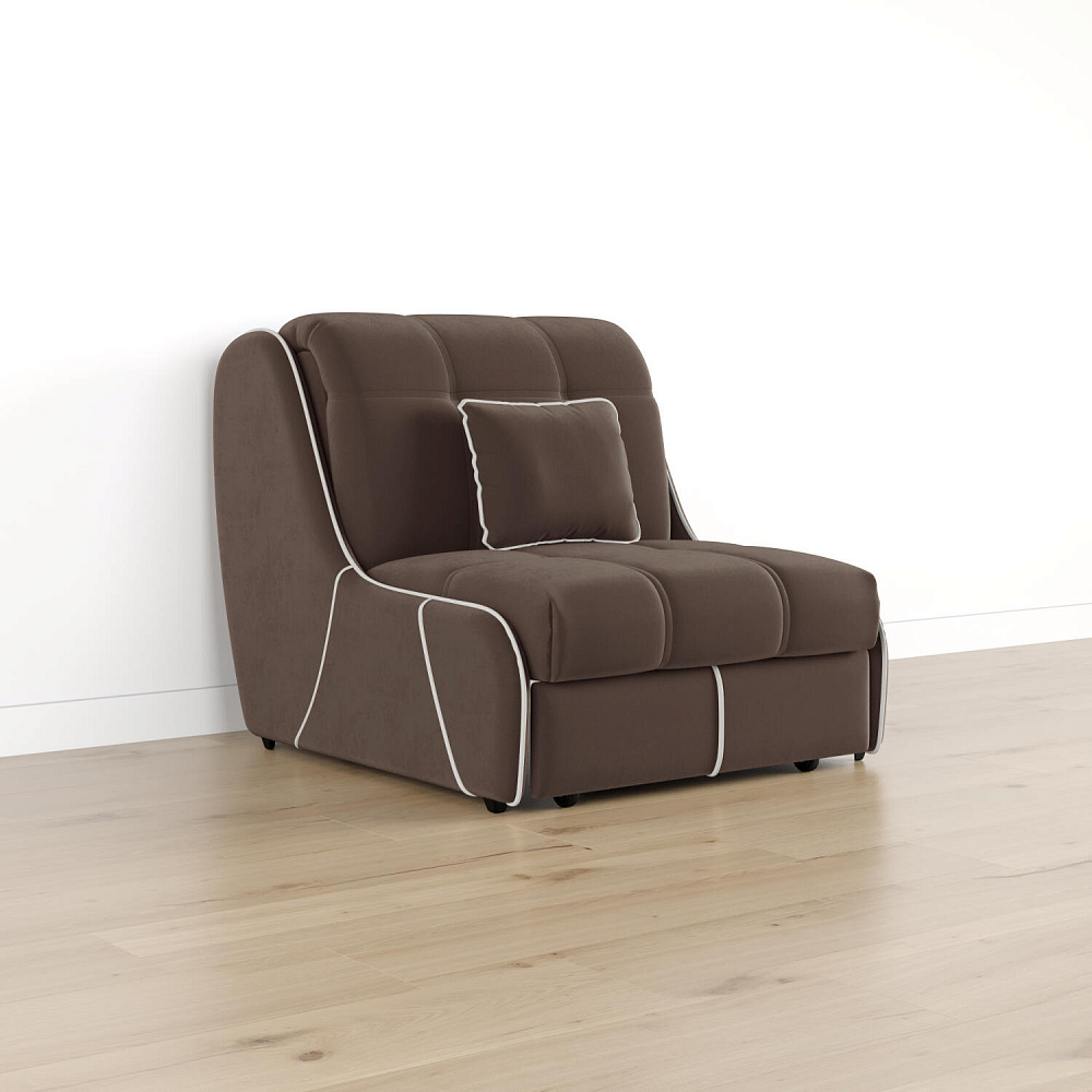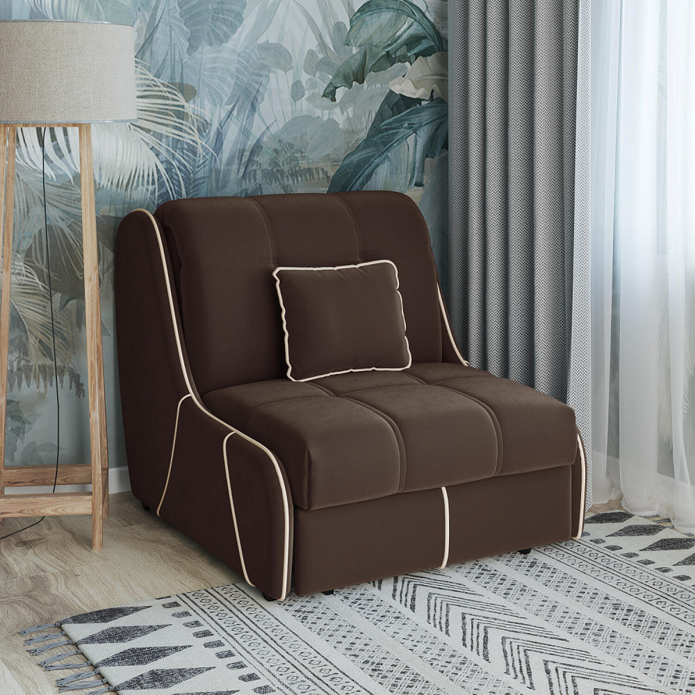 Кресло-кровать «Бонн» — лучшее сочетание компактности и функциональности. Благодаря отсутствию подлокотников оно не займет много места в комнате. С помощью удобного механизма трансформации «Аккордеон» кресло легко превращается в односпальную кровать с ровным спальным местом. Плавность форм и лаконичность модели подчеркивают акцентные линии декоративного канта.