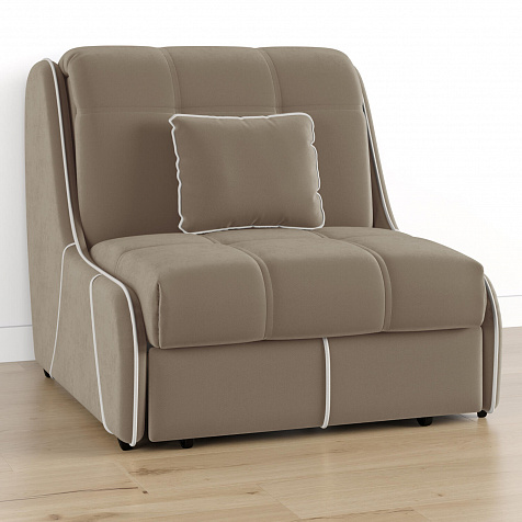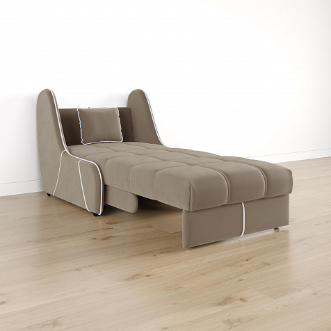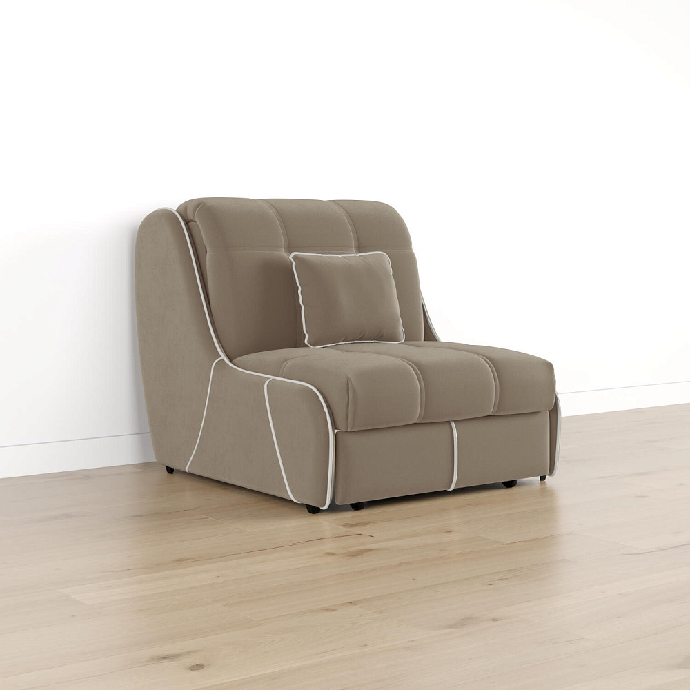 Кресло-кровать «Бонн» — лучшее сочетание компактности и функциональности. Благодаря отсутствию подлокотников оно не займет много места в комнате. С помощью удобного механизма трансформации «Аккордеон» кресло легко превращается в односпальную кровать с ровным спальным местом. Плавность форм и лаконичность модели подчеркивают акцентные линии декоративного канта.