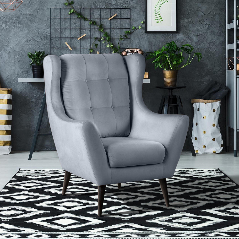 Высокая спинка с «ушками». В кресле с такой спинкой шея не будет затекать. Голову можно удобно облокотить на боковой выступ кресла и подремать после чтения книги. Длинная спинка дольше сохраняет тепло, в кресле особенно приятно будет греться у камина. Также «ушки» защитят от сквозняков, поэтому кресло можно смело ставить недалеко от окна.