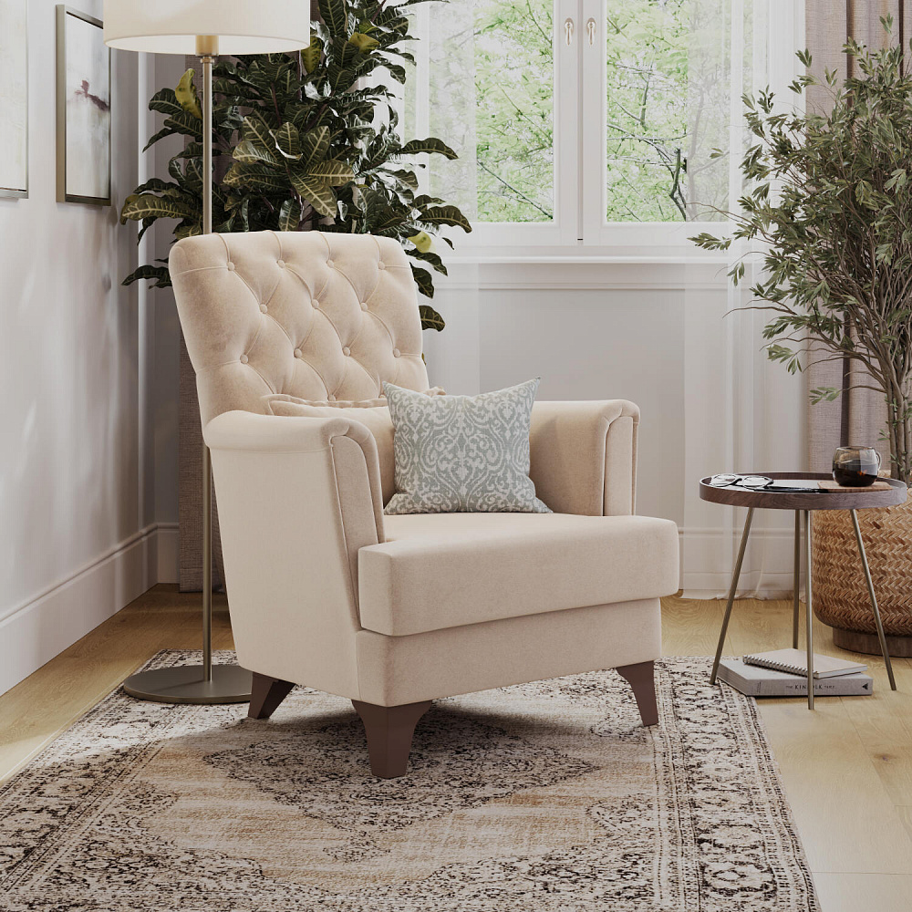 Кресло «Холли» подойдёт тем, кто ищет классику в современном видении. С помощью кресла можно организовать уютный уголок для чтения. А если поставить 2 и более кресел рядом, то получится идеальная зона отдыха в квартире или загородном доме.