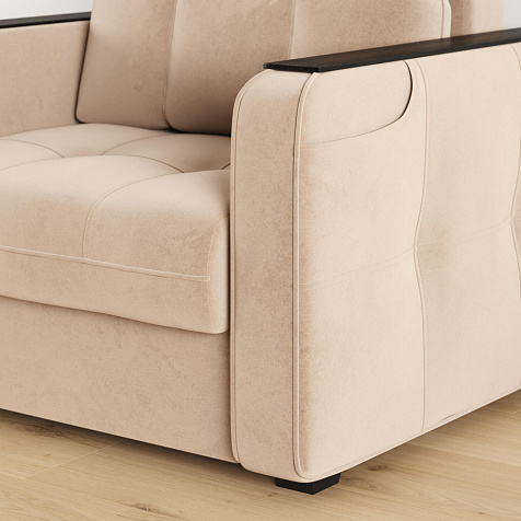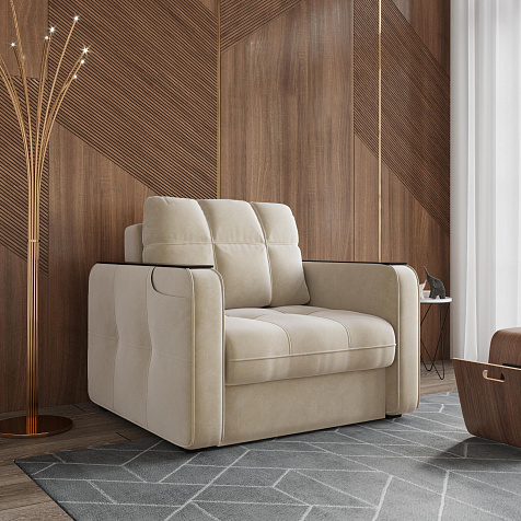 Кресло-кровать «Киль» подойдёт любителям посидеть с чашечкой кофе перед телевизором. Помимо односпального места и бельевого ящика модель оснащена накладками на подлокотниках, на которые удобно поставить кружку. Также на подлокотнике есть карман, чтобы смартфон или книга были всегда под рукой. Многофункциональное кресло не перегружено декором, поэтому подойдёт к большинству современных интерьеров.