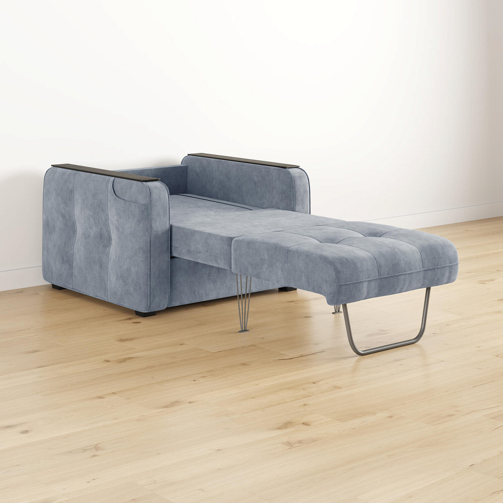 Односпальное место. Кресло раскладывается в односпальную кровать с помощью механизма трансформации «Каскад». Полноценная кровать прекрасно подойдёт в качестве гостевого варианта.